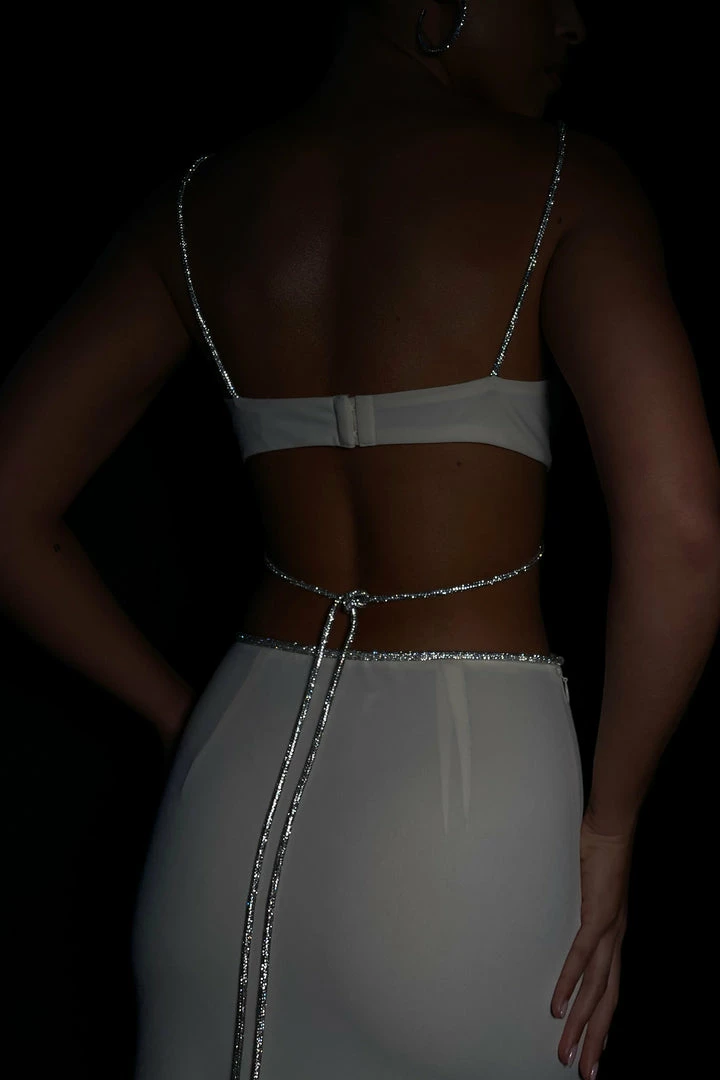 Nobody makes an entrance like SWEENEY. Made for bold statements, Sweeney has been crafted from a supportive form-loving crepe and fixed with adjustable diamante straps that help your feel secure while you’re inspiring second-looks. Dress down with MESHKI Denim or match with our Sweeney Diamante Maxi Skirt With Split for a modern take on evening glamour.