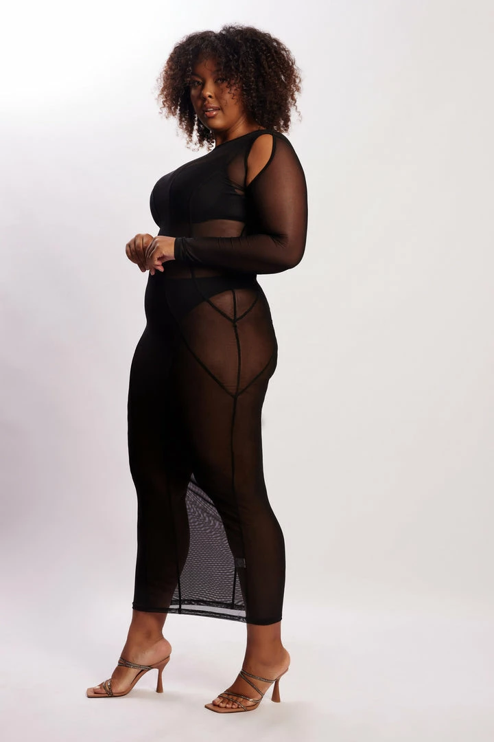 Meet CIARA. Unapologetically herself, Ciara makes a standout statement this season with her figure enhancing silhouette and luring mesh fabrication. She impresses from all angles with her sheer design and works to contour your curves with her encased panel lines. For maximum impact, pair with strappy heels and a diamante bag for the ultimate after-dark attire.