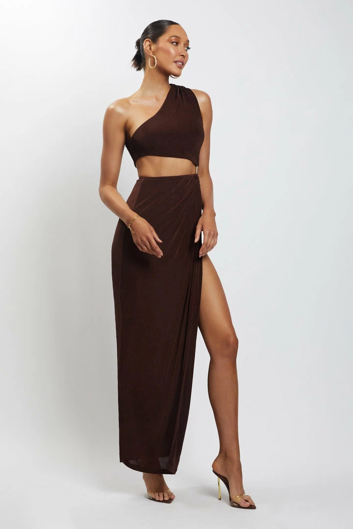 Designed for the MESHKI girl that dares to differ, the PAIGE Ruched Side Cut Out Maxi Dress exudes an alluring Grecian vibe that will have you captivating with every wear. Boasting an asymmetric silhouette, Paige features waist cut-outs and an extreme, leg baring side split opening to show off your legs. The dress drapes beautifully over your figure and doesn’t shy from making a statement.