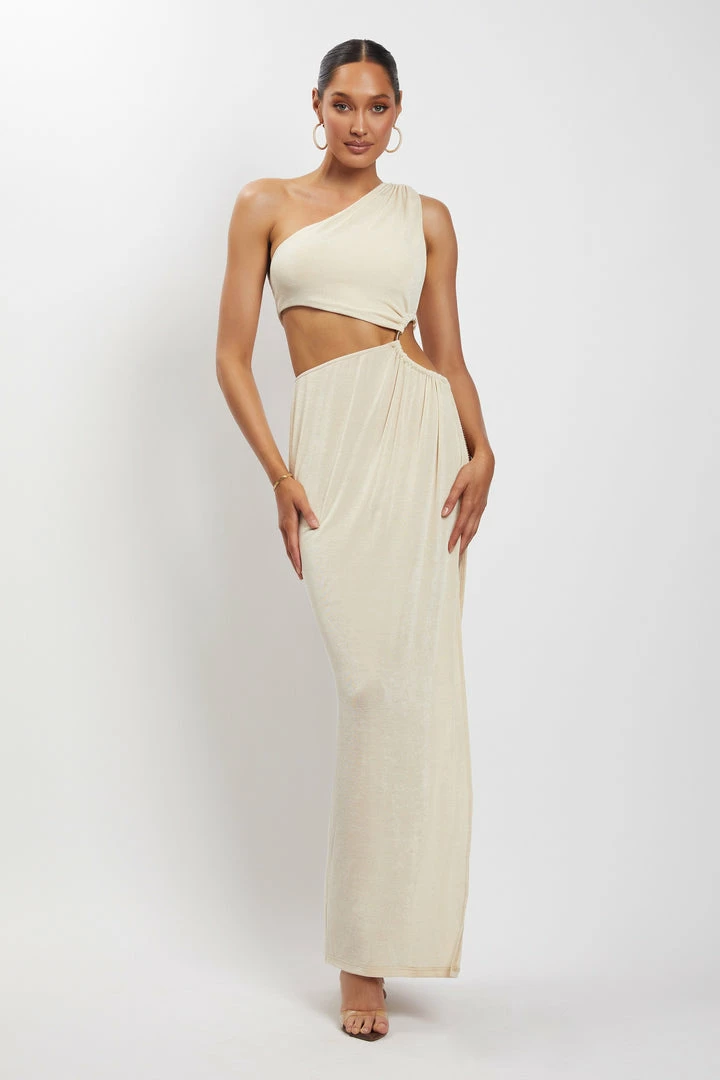 Designed for the MESHKI girl that dares to differ, the PAIGE Ruched Side Cut Out Maxi Dress exudes an alluring Grecian vibe that will have you captivating with every wear. Boasting an asymmetric silhouette, Paige features waist cut-outs and an extreme, leg baring side split opening to show off your legs. The dress drapes beautifully over your figure and doesn’t shy from making a statement.