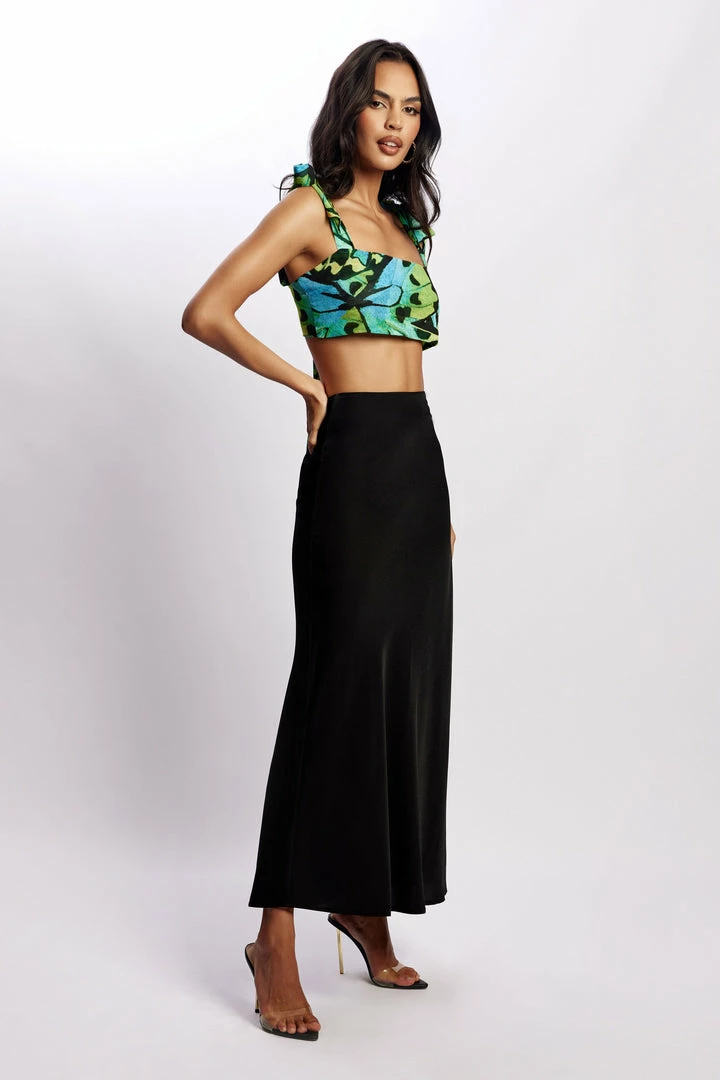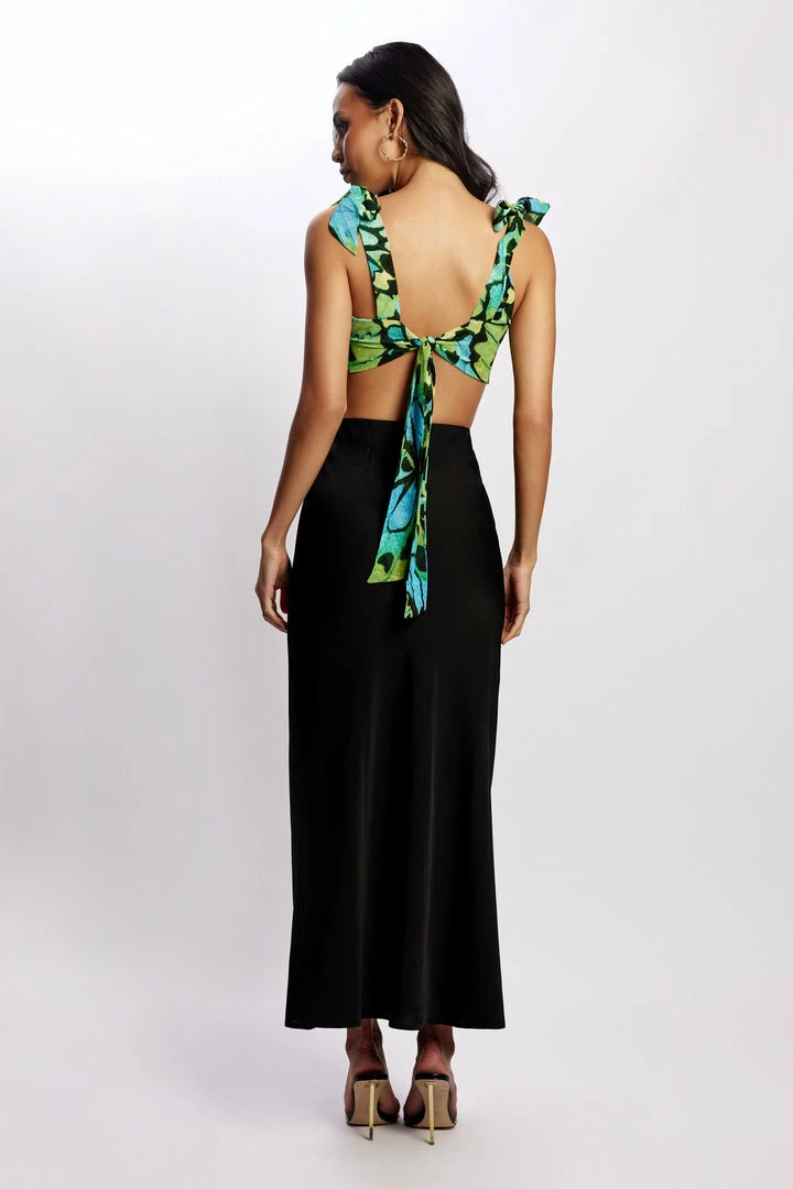 You’ve got style on your side with BECKA. Featuring our ornate butterfly print in soft chiffon, she boasts adjustable tie up straps to totally transform your days and nights. Match with our Janice Asymmetric Skirt With Ruffles or Sonya Low Rise Denim Jeans to complete the look.