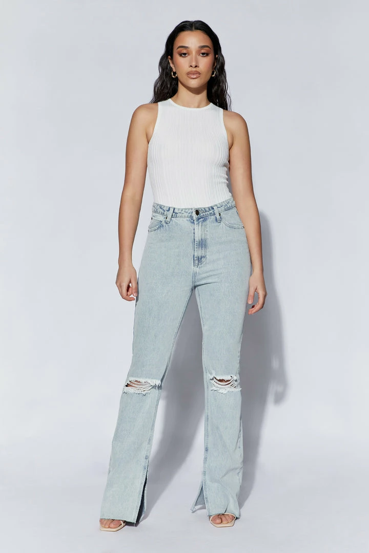 She might serve a sleek understated silhouette but there’s nothing low-key about our LOUISA Recycled Sleeveless Knit Bodysuit. Featuring a high collar neckline a firm double-lined fit, and a fabric crafted from recycled fibres, Louisa truly elevates a basic bodysuit beyond fashion and towards a more sustainable future. Wear her with the Tyra Straight Leg Faux Leather Pants to complete the look.