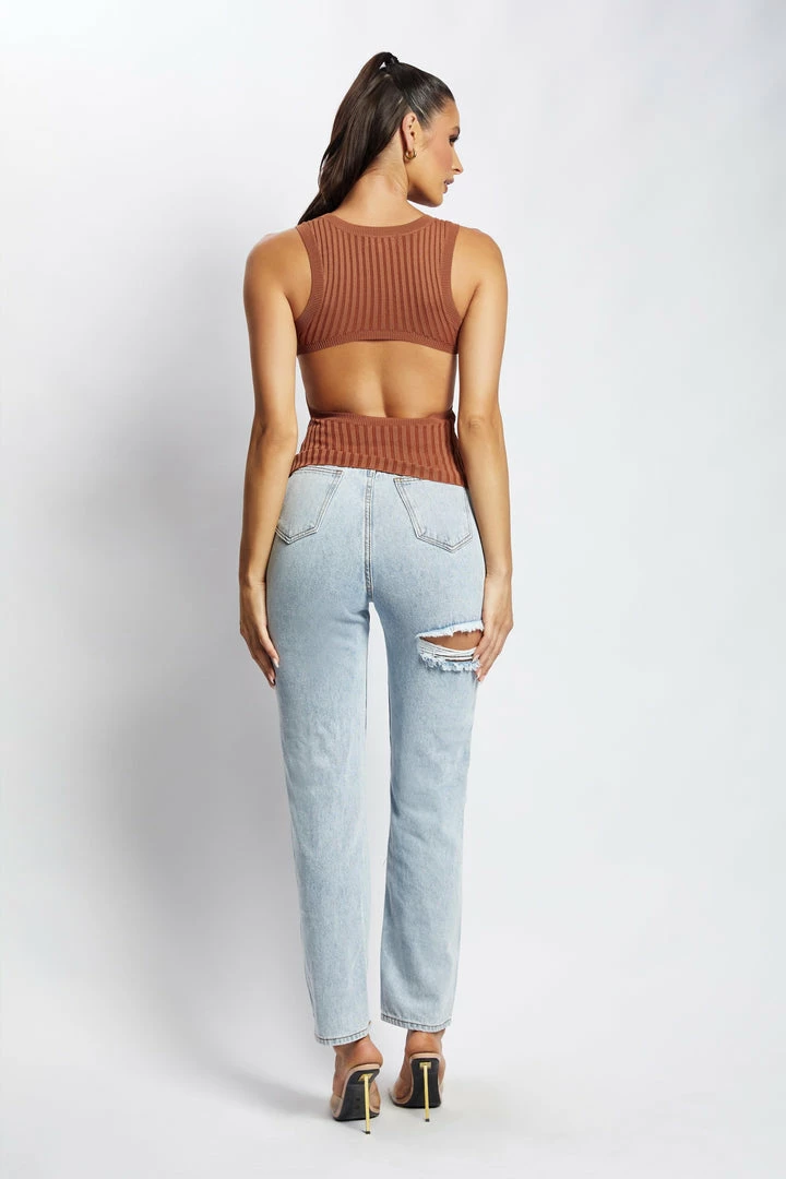 Meet your new wardrobe staple – revamped in a modern silhouette with an open-back cut out. The ANDRIA Ribbed Knit Tank Top is crafted from a luxurious, tonal ribbed fabrication with comfort and versatility in mind. She pairs seamlessly with denim and sneakers for an effortless day ensemble, and just as well with leather pants and heels for a night on the town. Neutral in its tone, Andria will keep you on-trend for every event on your calendar.