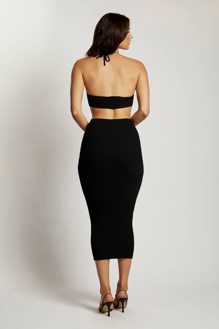 Figure-hugging, a flattering halter neckline and cut-out back detailing. What’s not to love about the MORGAN Halter Knit Midi Dress? Its ribbed knit fabrication is equal parts comfortable and stylish and timeless silhouettes make the ultimate staple midi. Elevate your look with statement accessories for a romantic date night or night our with your girls.