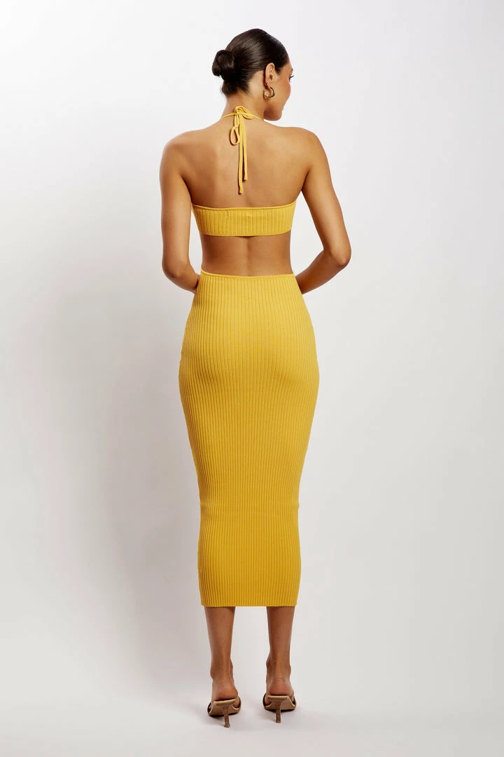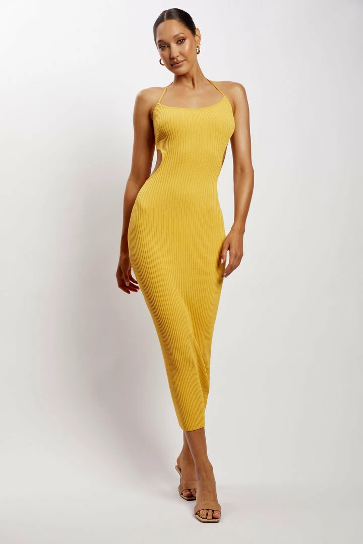 Figure-hugging, a flattering halter neckline and cut-out back detailing. What’s not to love about the MORGAN Halter Knit Midi Dress? Its ribbed knit fabrication is equal parts comfortable and stylish and timeless silhouettes make the ultimate staple midi. Elevate your look with statement accessories for a romantic date night or night out with your girls.