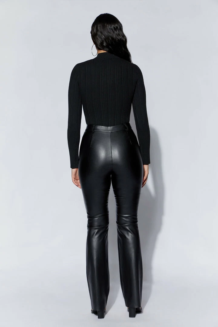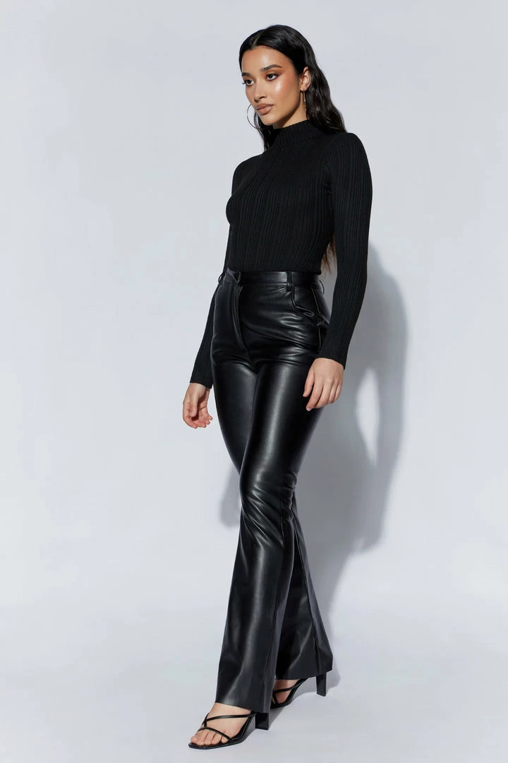 She’s cool, calm, and oh so collected — the RUTHIE Recycled Knit Long Sleeve Bodysuit has your cool weather staple dressing all sorted. Featuring a high collar neckline, generous long sleeves, and crafted from recycled fibres, Ruthie serves up a totally touchable and more sustainable staple for your cool-weather-wardrobe. Pair her with our Tyra Straight Leg Faux Leather Pants to complete the look.