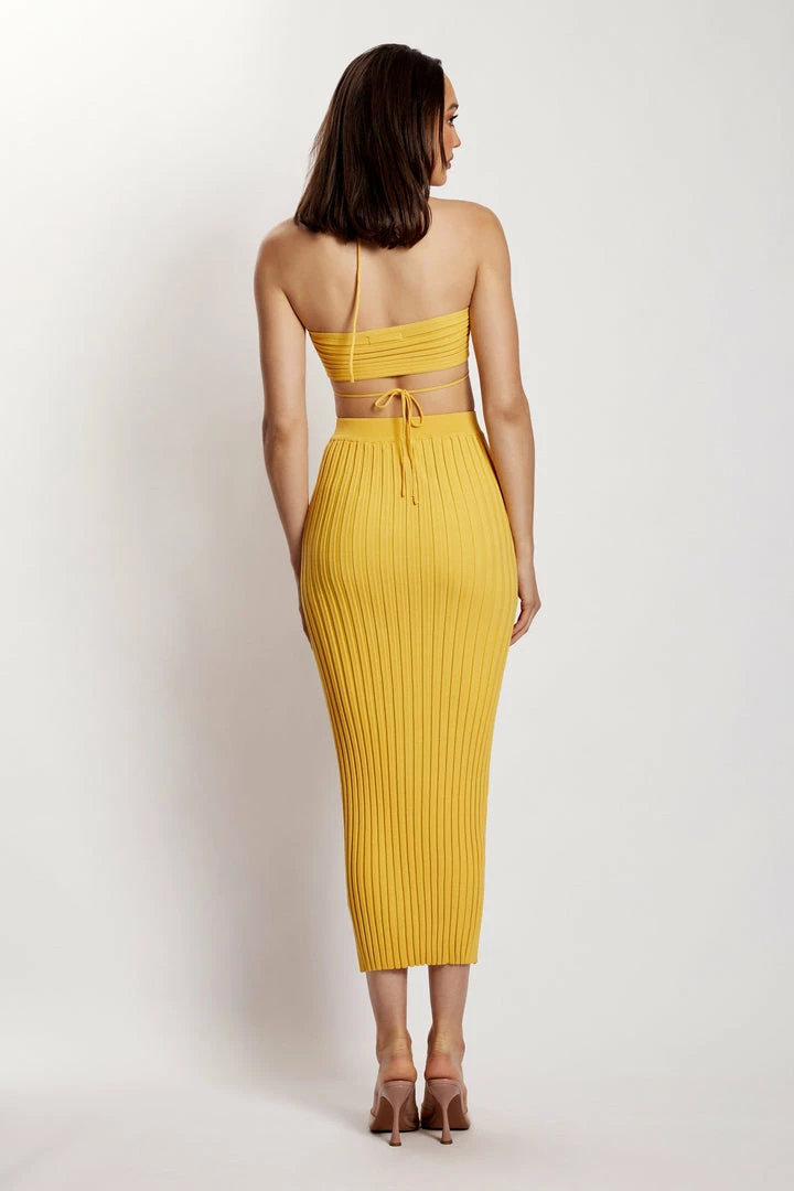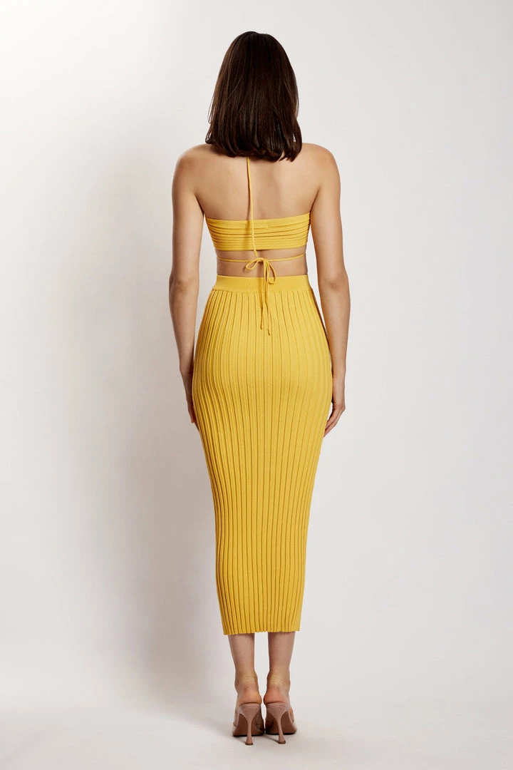 Flaunt your curves in our figure-hugging CRYSTAL Ribbed Midaxi Skirt. Crafted from a comfortable ribbed knit with a smooth elasticated waistband, Crystal enables easy movement without compromising style. Pair with our Stacey Ruched Knit Halter Top for a season of celebrations ahead.
