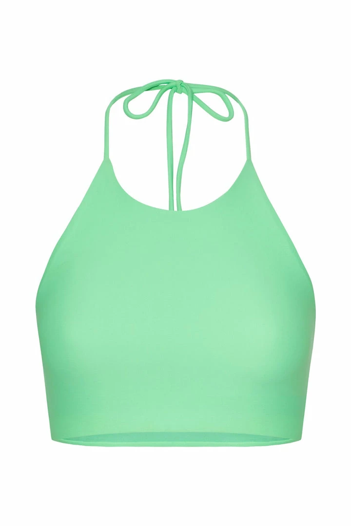 You won’t be tamed in our REXANA Apron Bikini Top. Designed with a vibrant green colour, halter neckline and exclusive MESHKI toggle to tie up.