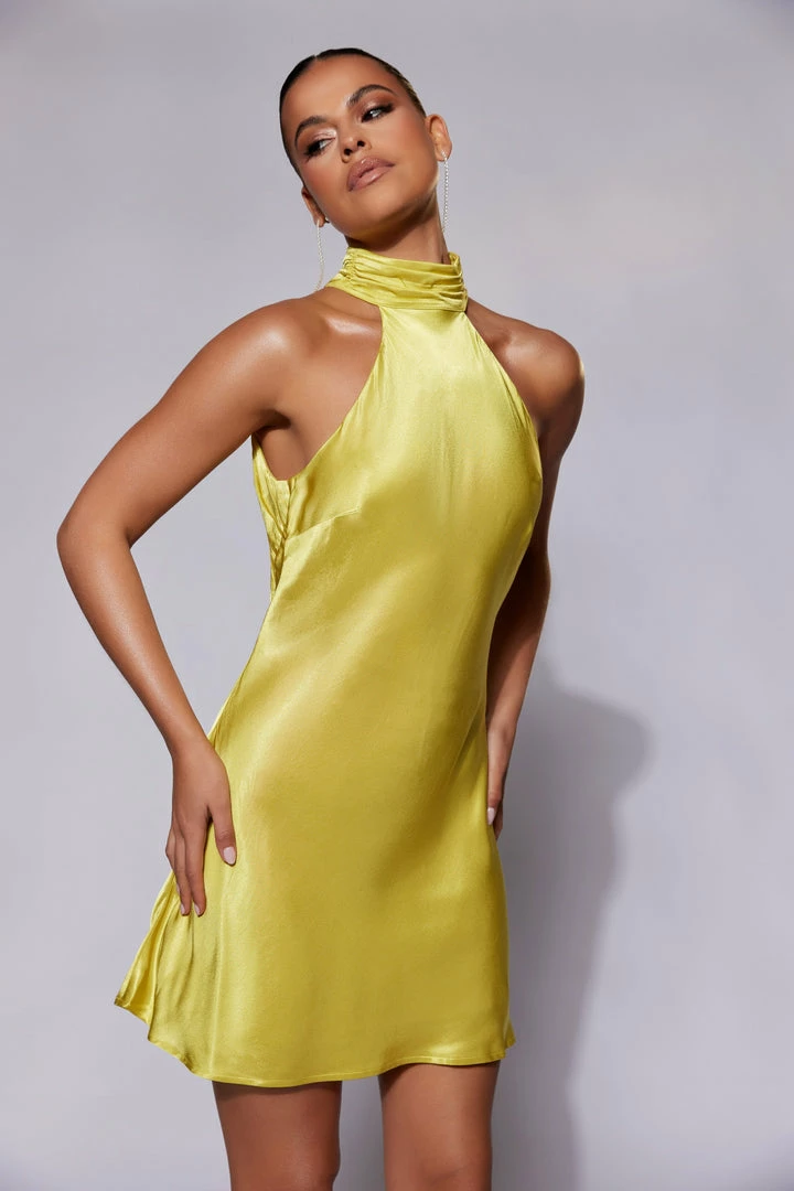 Cut a fine figure in CLAIRE, our A Line Mini Dress that sets heart-rates high and heads turn. She might be backless but she’s always got your back, Claire’s a mini with maximum attitude with a high-collar neckline contrasting against a sexy low cut finish. Made from an arresting satin-like fabrication, she’s one smooth operator.