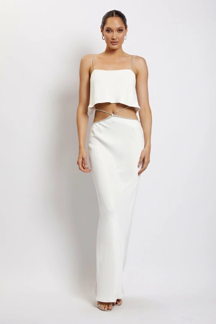 Sleek and endlessly chic, the DAYANA Diamante Maxi Skirt is the perfect way to add glamour to your fluid evening wear. Cut from a lightweight satin, Dayana showcases an elongating silhouette and is adorned with diamante straps at the waist to impress from all angles. She’s the perfect after-dark piece for the MESHKI girl that likes to make a statement. Make it a co-ord with our Dayana Straight Cut Crop Top for your next cocktail soiree.