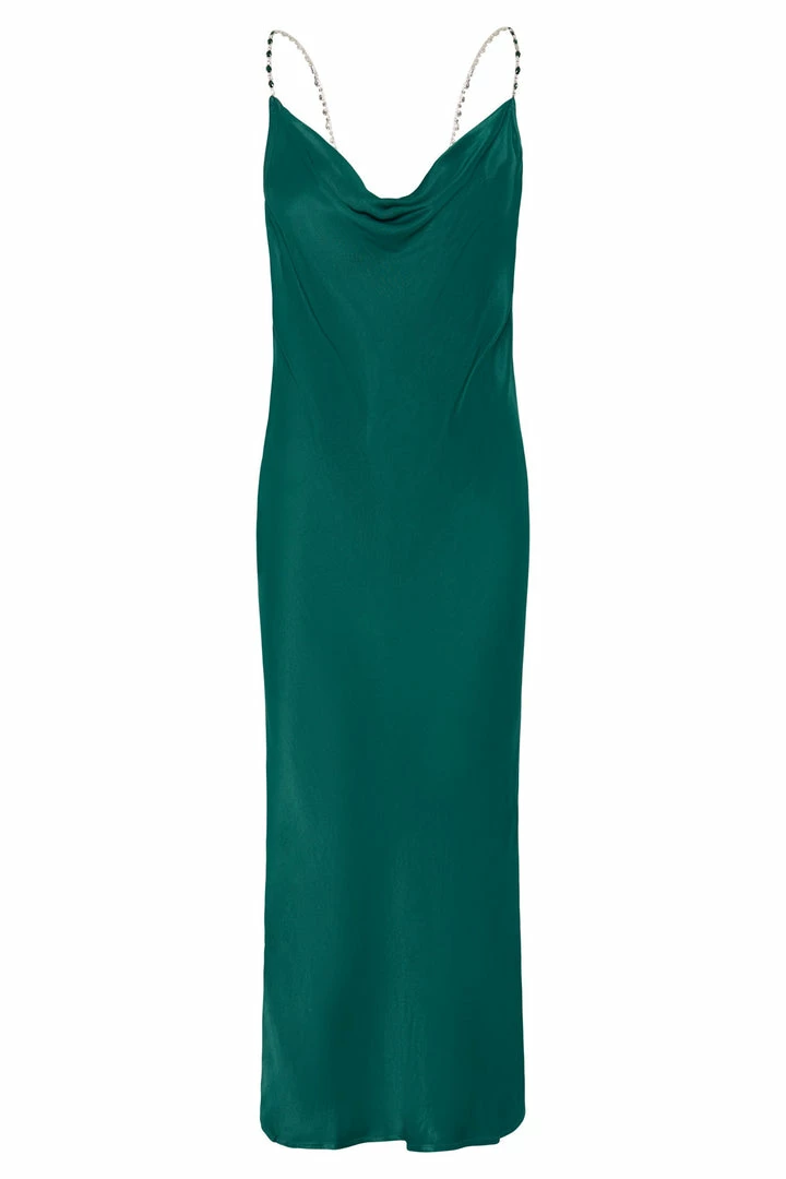 This ethereal RASTA dress cuts a loose, natural, airy silhouette. The drape of the fabric coupled with the cowl front neckline, diamante straps, and the length of the skirt will make you feel like a faerie of the forest or a nymph of the lake; mythical, mysterious, and otherworldly. For the dreamers, the free spirits, and the true romantics, Rasta is your soulmate. Your go-to gown for days when you want to look and feel as fresh and as free as possible. Accentuated with custom bedazzled straps and back panelling details, this dress’s design is a breath-taking example of how stunning simplicity and subtlety can be. Soft material, a deep-v back neckline, and a casual, draped silhouette add to the natural, grounded vibe of the design. In White, RASTA gives a dreamy, goddess-like vibe. Pair with woven sandals for a day like or simple studded heels for a casual dinner setting. In Emerald, this dress leans more rich, earthy, and natural. Let your hair frame your face in loose waves and accessorise with makeup in autumnal or earthy tones!