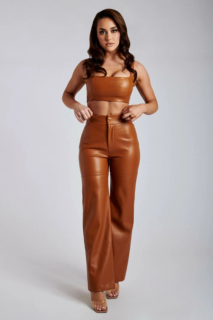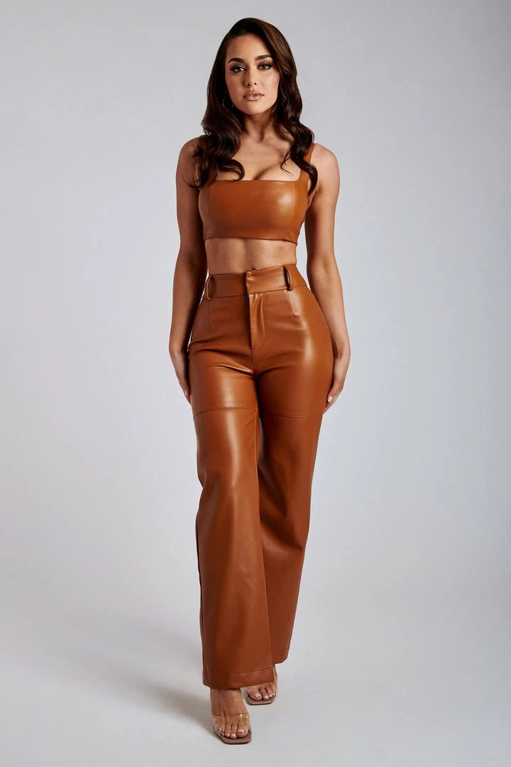 Stay on trend with our SIMA Faux Leather High Waist Pants. Featuring a wide leg fit and snatched waist-band, perfect to help enhance all your best assists.These pants are comfortable, slimming and very edgy for your weekend look! Complete the look with matching PARMYS Crop Top.