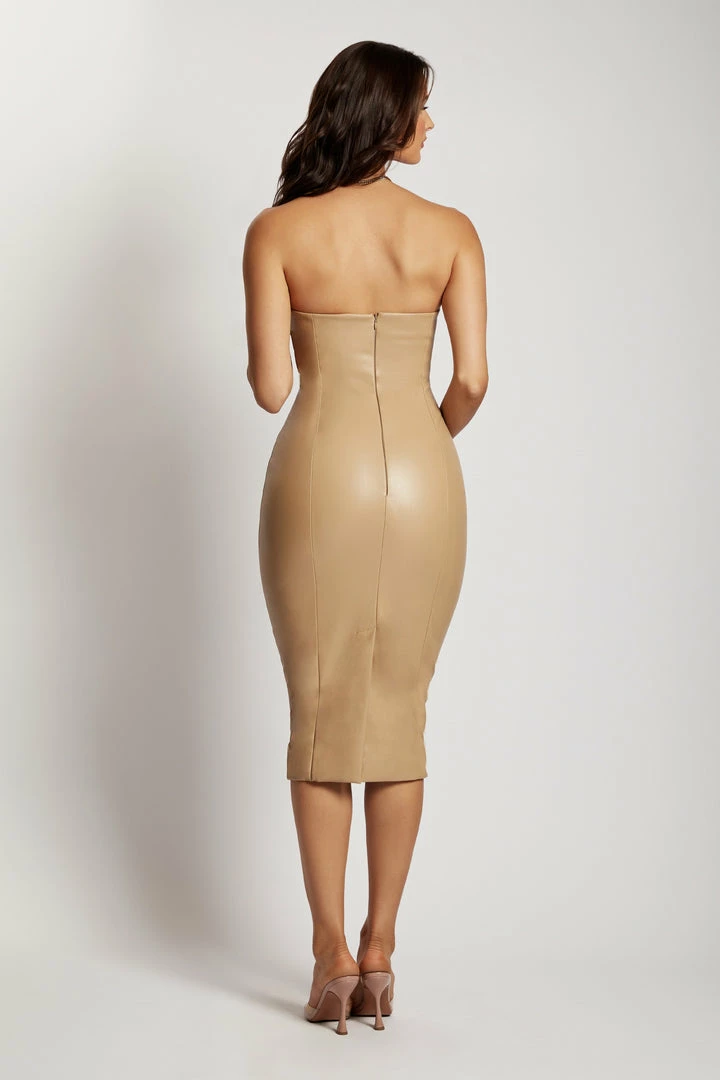 It ain’t MESHKI if we aren’t keeping you snatch 24/7. Our PAMELA Strapless Faux Leather Dress is our latest snatched midi dress highlighting everyone’s best asset’s. Featuring a strapless neckline, leather-look PU fabric and invisible zipper to close. Make sure you’re pairing this dress with our DREA heels for an ultimate bad girl fit.