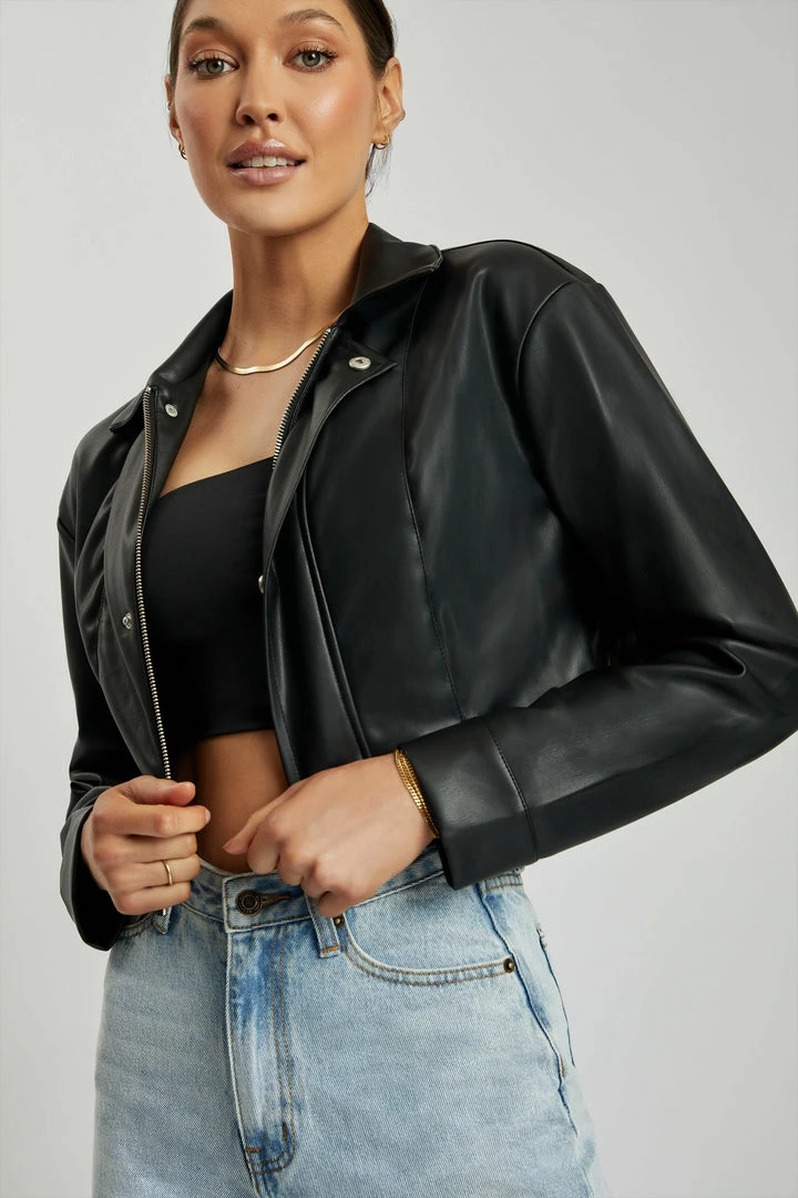 Feel like a boss in our RAMONA Faux Leather Cropped Jacket. Perfect for a night out when paired with our BAHAR Midi Skirt or keep it casual with our PIA Denim jeans. This jacket is an all-round winner.