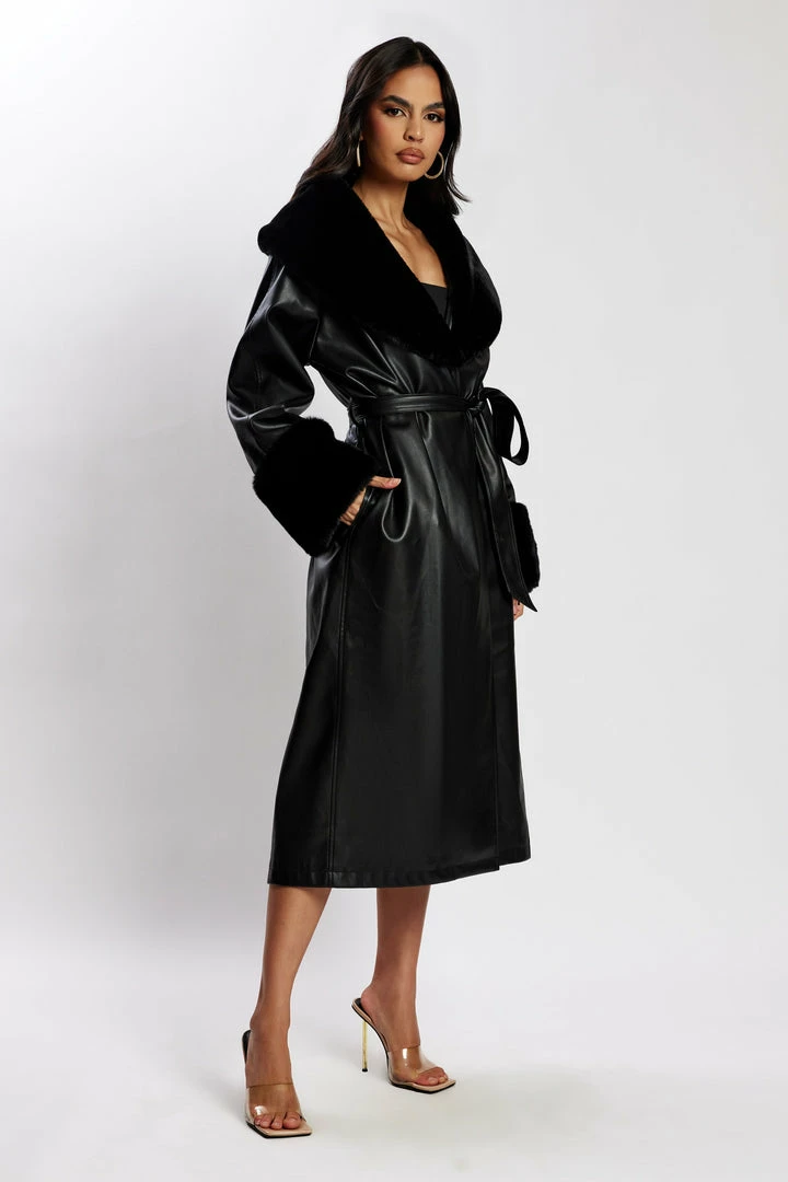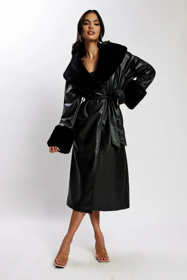 Elevate your outerwear with REBEKAH. Featuring ethical fur trimming along the lapels and a classic longline silhouette, she’s the ultimate winter weather companion and turns heads wherever she goes. Match with our Tyra Straight Leg Faux Leather Pants for perfect luxe layering.