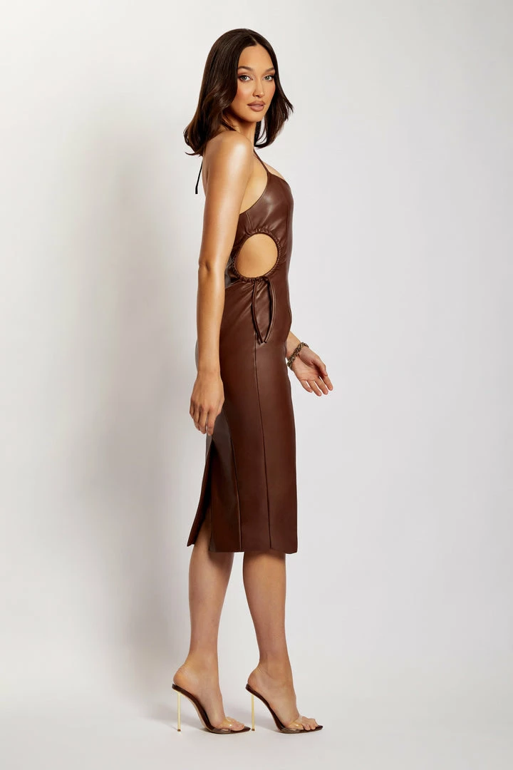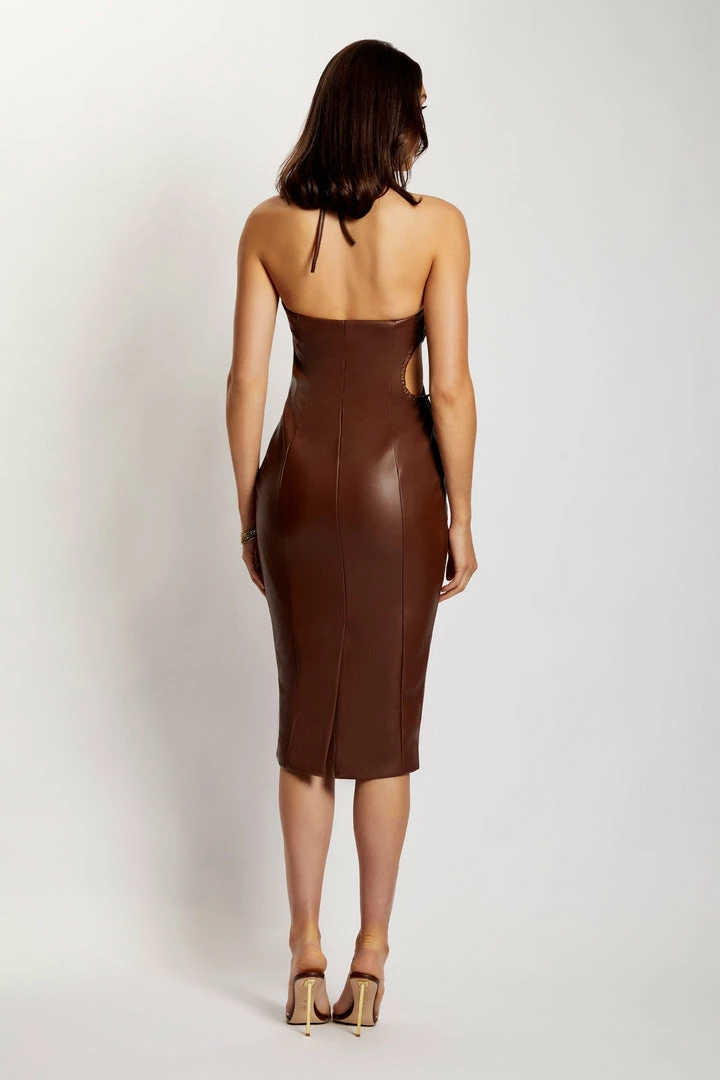 There’s something a little mysterious about a woman in leather, wouldn’t you agree? Surpassing expectations, the SIOBHAN Cut Out Faux Leather Midi Dress is designed to hug your body in all the right places. She’s a toned look that encourages an original panelled silhouette while honing in on a newer cut-out design that features a halter neck tie. We have ‘Dangerous Woman’ playing in 3..2..1.