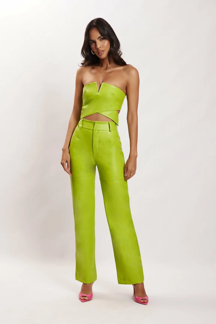 SIMA demands attention from first glance. Crafted from our much-loved faux leather fabrication, these high waisted bottoms showcase a straight cut silhouette, a wide waistband to accentuate your form and a concealed centre front zip and fly closure. She’s the ultimate statement piece for the modern wardrobe and can be dressed up or down to rise to any occasion. Pair back with MESHKI Basics for an elevated everyday look or opt for a tonal ensemble with our Perrie Faux Leather Cut Out Crop Top.