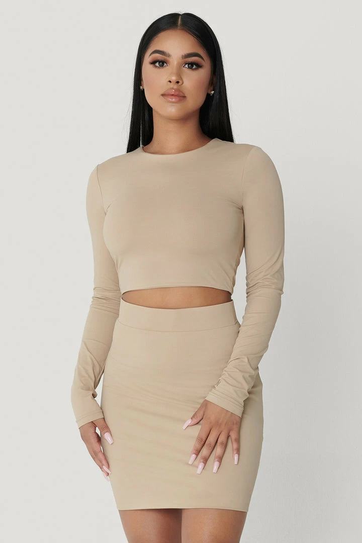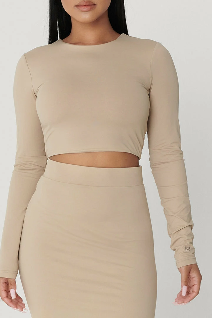 Be the trendiest baddie walking the streets in our EMERLY Crop Top. With this flattering double-layered jersey material and figure-hugging design, your features will be contoured. Style yours with our SYLVIA Joggers and clear perspex heels for a classic breath-taking appearance.