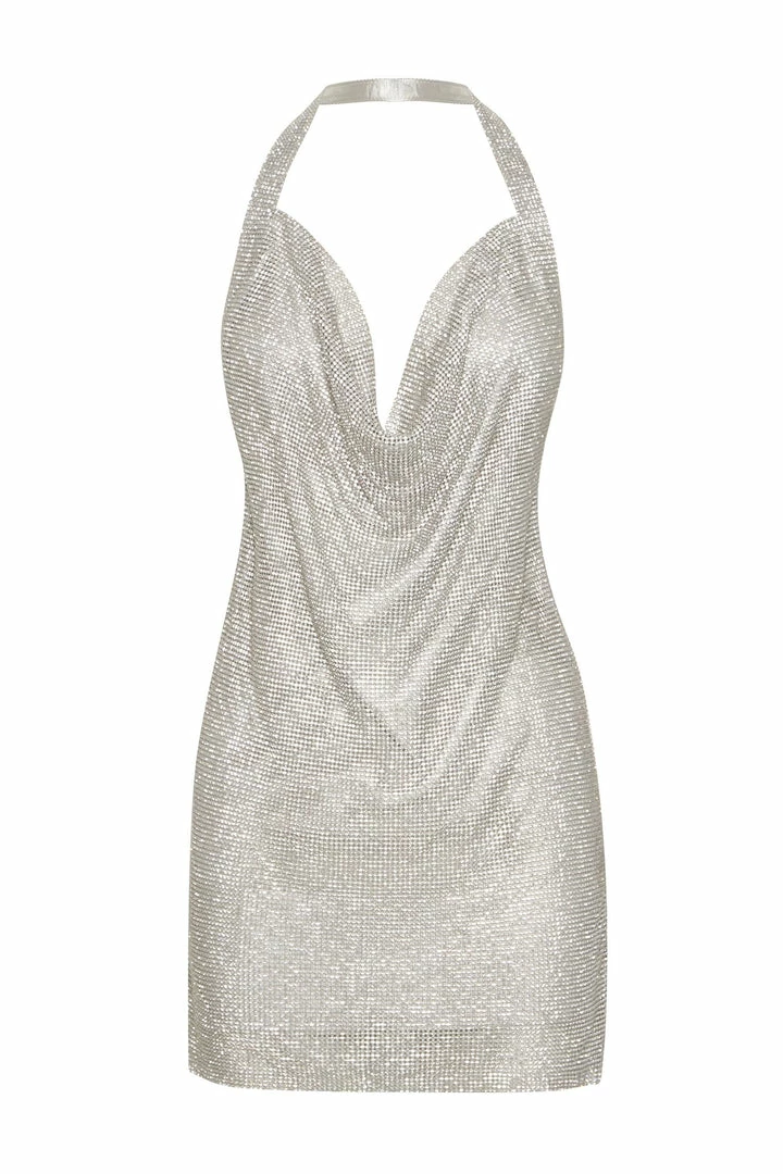 Get ready to wow in our glitzy MEILANI Low Back Glow Mesh Mini Dress. This gorgeous show-stopping dress features a mesh chain detail, with a halter neckline fastening and low back detail. This dress is everything but basic! Make sure to pair with our GRACE Clutch for a look we’re crushing on.