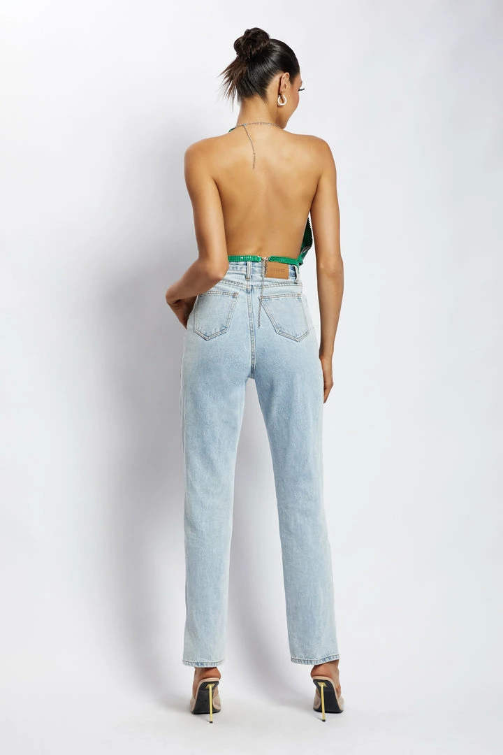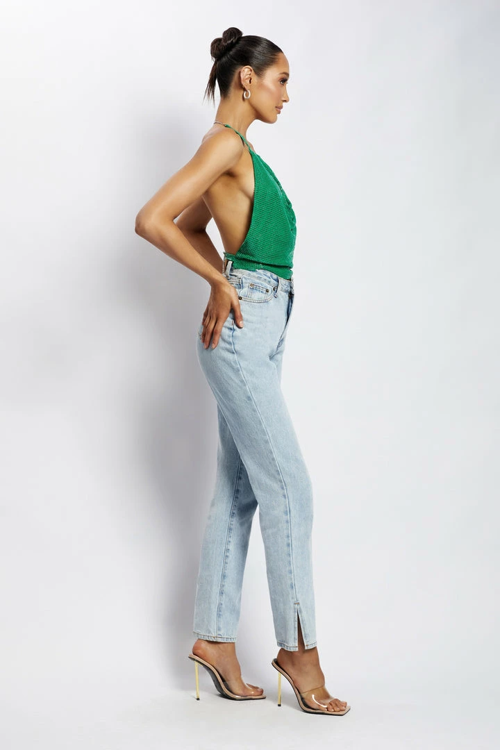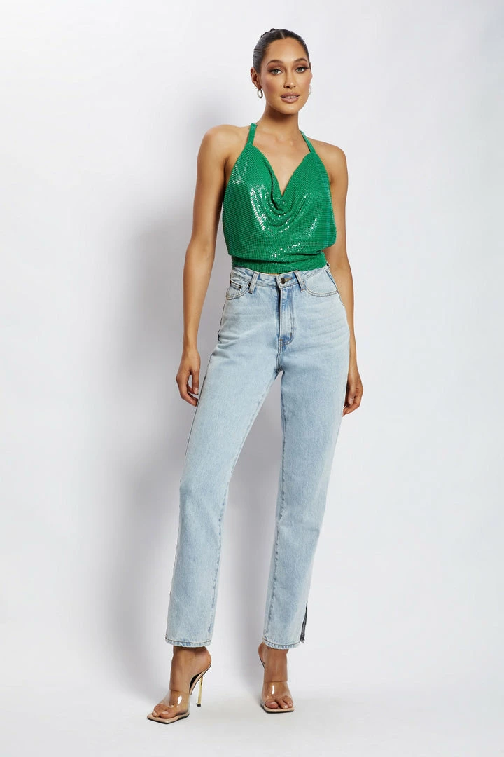 Dial up the drama in the BRINLEY Cowl Neck Glow Mesh Top. Beautifully handcrafted from our signature rhinestone and aluminium fabrication, Brinley is guaranteed to capture the attention that you deserve. She features wide halter straps, a striking open back to complement your sun-kissed skin and is fully lined for comfort. Pair with MESHKI Denim and let her do all the talking.