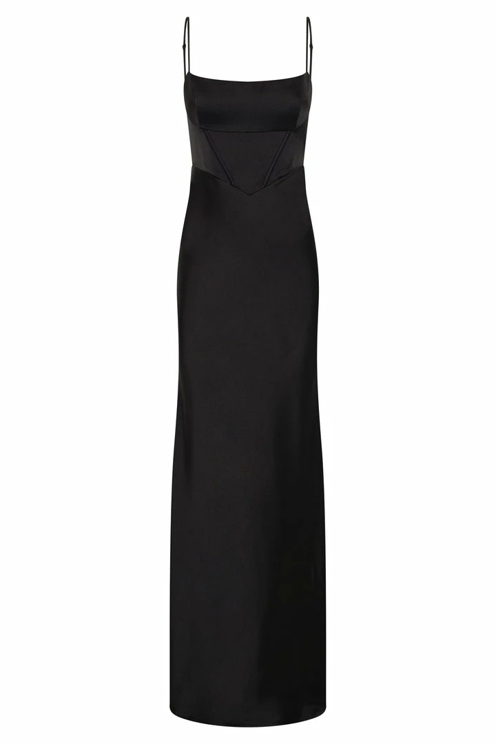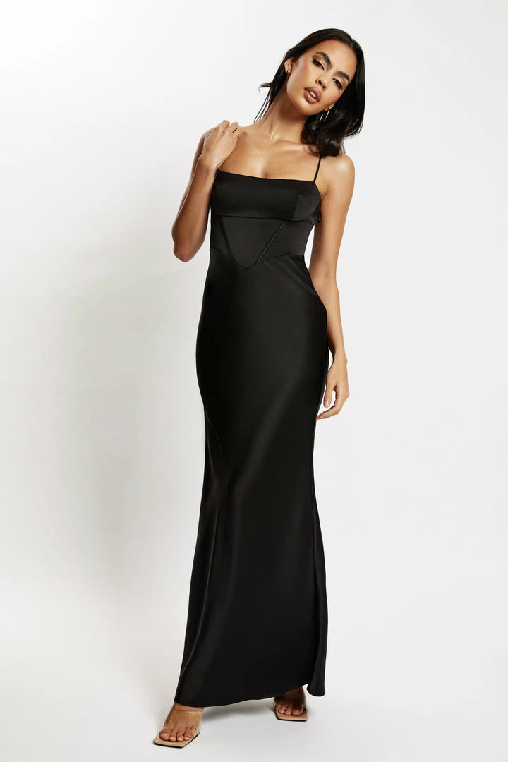 Putting the ‘form’ in formal, DESIRIE delivers a serious dose of drama and elegance to your next event. Designed to cinch the waist with our boned bustier, her fluted skirt works to show off your curves. Add our Caitlin Diamante Rope Heels to complete the look.