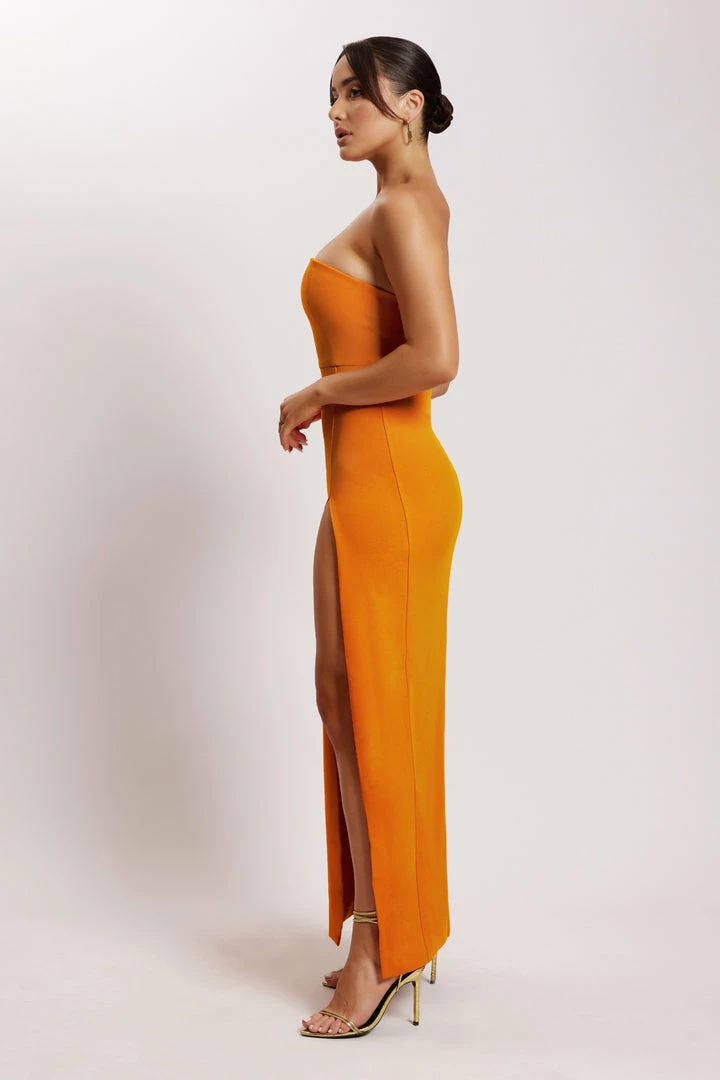 Exude glamour and prepare to turn heads in the RACHEL Midaxi Split Front Dress. In a strapless design with a sexy thigh-high split, Rachel is crafted from a flattering stretch crepe for ultimate comfort all night long. The bodice is form-fitting to accentuate your waistline and provides support to uplift the bust. Pair with neutral stilettos and our Bailey Twisted Small Chain Anklet/Bracelet to complete the look.