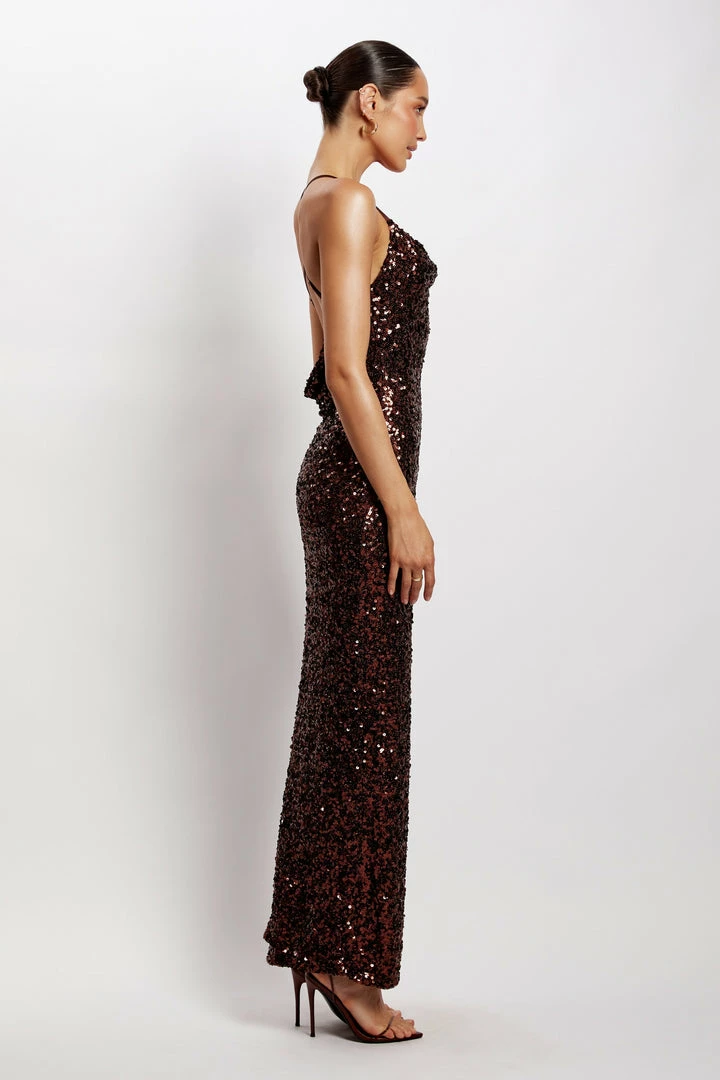 Ensure your entrance is one to remember in the LILY Sequin Front Split Maxi Dress. Flaunt a modern display of shimmering sequins in this figure-hugging number that will snatch your waistline and ensure you are the life of the party! Lily is fully lined for a comfortable finish and showcases a plunging low back with cross-back adjustable straps. Complete the look with barely-there heels and minimal accessories.
