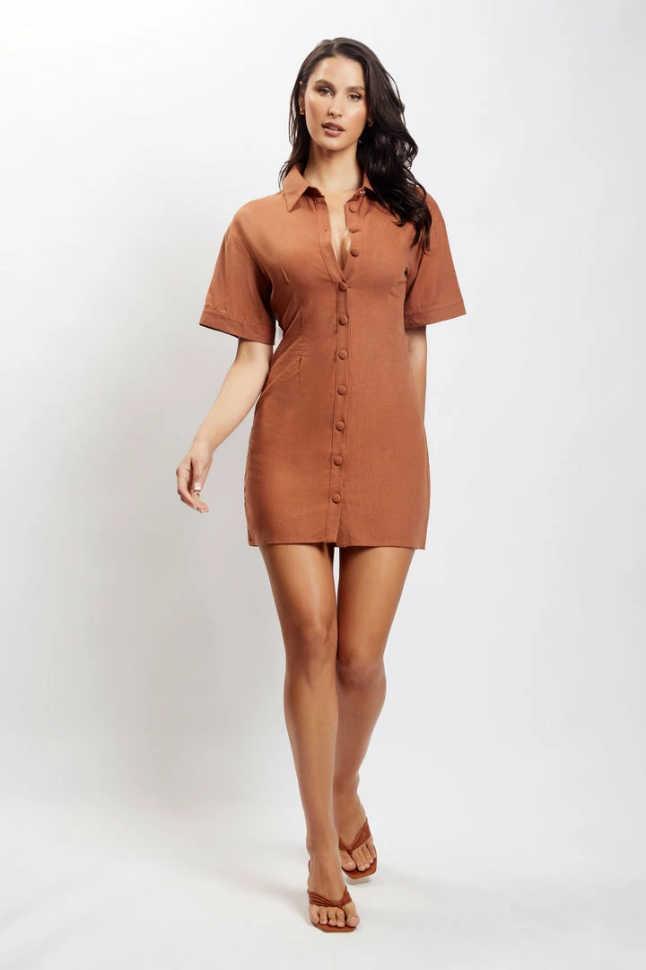 The PALMA Cinched Waist Linen Mini Dress offers the best of both worlds with her minimalistic design. Featuring a collared neckline and relaxed silhouette, Palma is cinched at the waistline to flatter your form. Pair with white sneakers for an easy take on off-duty dressing or dress it up with gold jewellery and strappy heels.