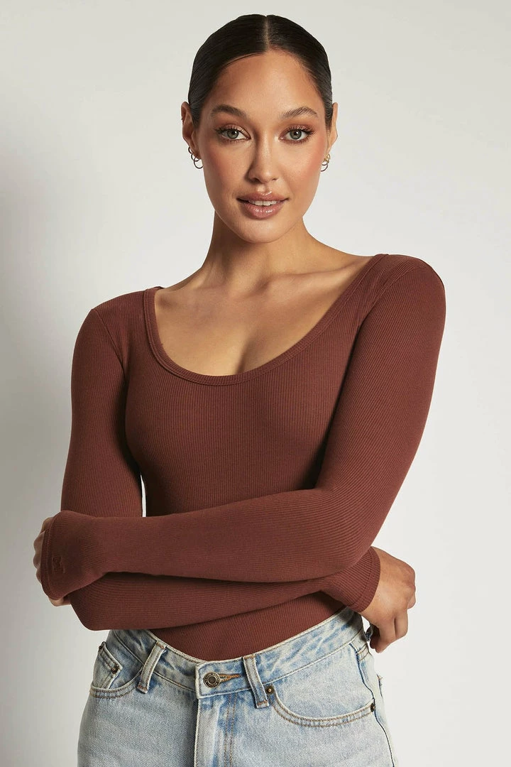 This is a bodysuit that’s there when you need to go for an effortless yet elevated look and you want to feel comfortable yet expensive. With a perfectly rounded neckline that frames the décolletage and flatters the bust without revealing too much, and tightly fitted long sleeves that make you feel supported and contoured, the ADARA Bodysuit is like foundation for your wardrobe.