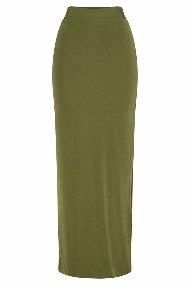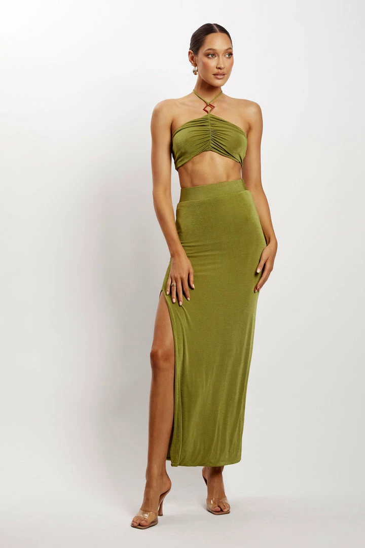 Crafted from a luxe jersey fabrication that enhances your curves, the ALIZEH Maxi Ice Jersey Skirt boasts a slinky silhouette that will take you effortlessly from dawn to dusk. She sits comfortably on the waistline with her slip on design and features a split to thigh. Team with our Alizeh Ruched Halter Crop Top for long luncheons that transition to dinners.