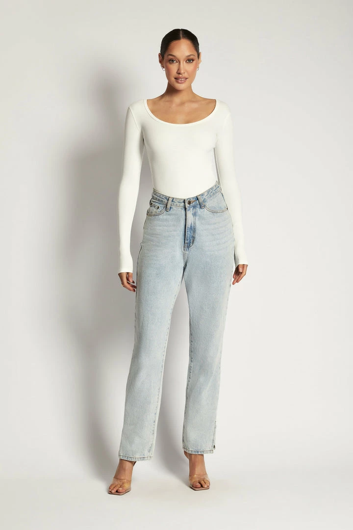 This is a bodysuit that’s there when you need to go for an effortless yet elevated look and you want to feel comfortable yet expensive. With a perfectly rounded neckline that frames the décolletage and flatters the bust without revealing too much, and tightly fitted long sleeves that make you feel supported and contoured, the ADARA Bodysuit is like foundation for your wardrobe.