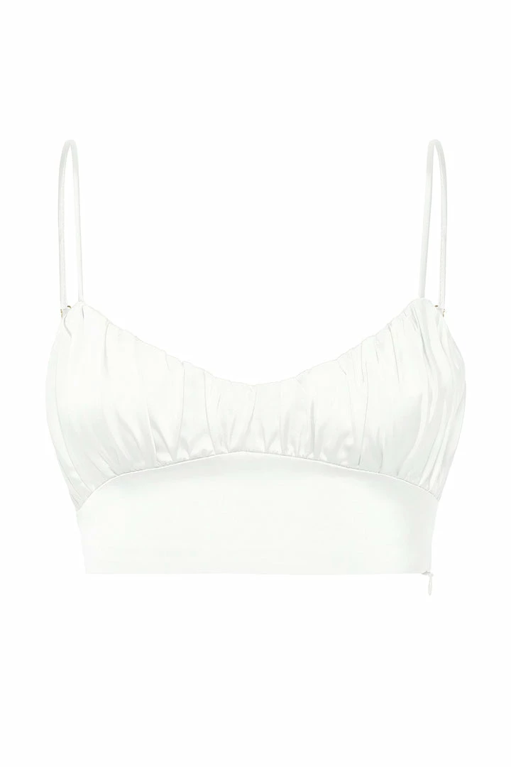 Don’t skip a beat this season in the BREA Ruched Bust Crop Top. Featuring a flawless designed ruching across the bust accentuating your curves. If you are after the perfect match, pair with the FLEUR Floaty Midi Slip Skirt.