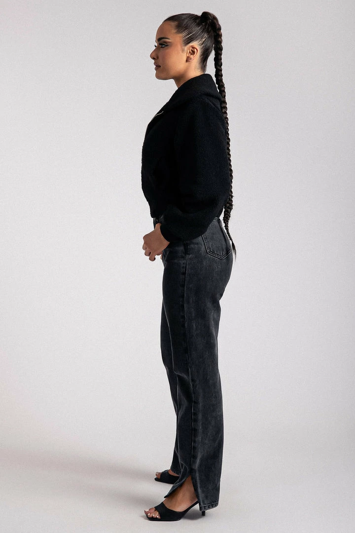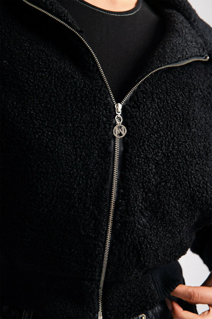 Hello CAMILA, welcome to my wardrobe. The Teddy fur jacket makes you super cuddly and soft with a customised tonal MESHKI embroidery. Perfect to layer over any outfit in the trans-seasonal weather.
