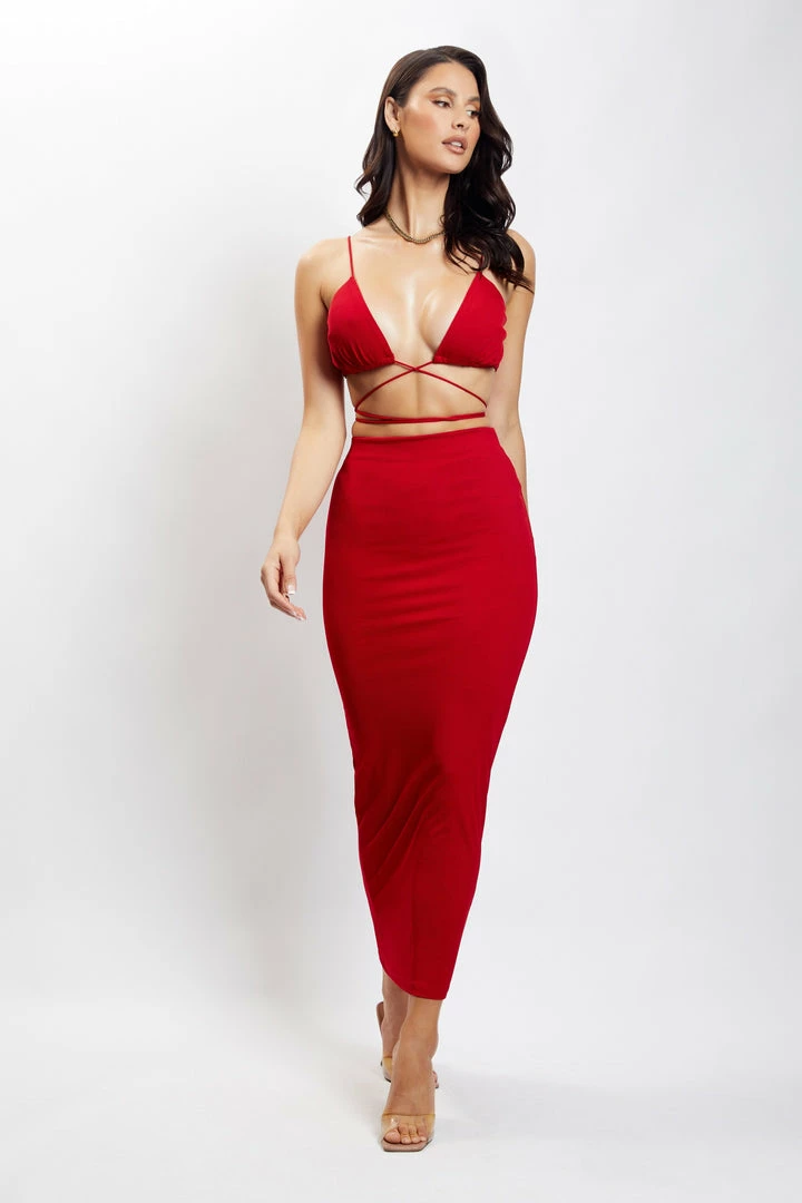 The love for knitted separates are here to stay and this skirt is a contemporary wardrobe must-have. Remain effortlessly on trend in the DOLCE Ribbed Midi Skirt, designed in MESHKIs signature ribbed knit fabrication for a close fit that will flatter your curves. Make it a crush worthy co-ord with our Suzie Triangle Bralette or Renee Wrap Over Ruched Top for rooftop sunset drinks or pair with our Basics range to elevate your everyday.