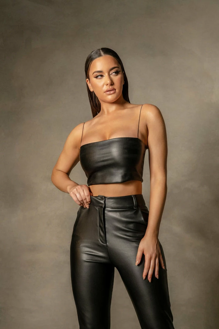 Be all about the edge and texture in our DOLLY Pu Crop Top. Featuring a PU leather fabrication, straight square neckline and super thin straps. Wear with statement earrings and NAOMIE Ruched Mini Skirt for a chic fall look we are loving!