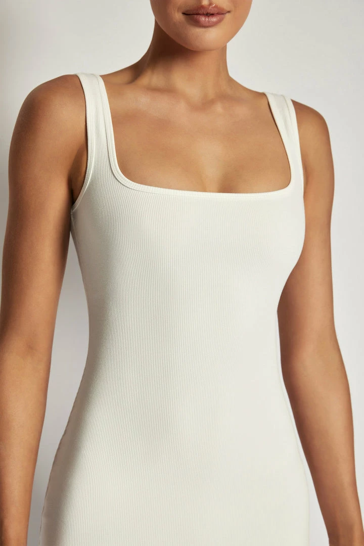 The square-neckline on the IZZY dress is flattering for all body-types. If you’re blessed with a voluptuous bust, it will enhance and highlight your curves without adding unnecessary volume and if you’re rocking a smaller bust or a petite figure, it will create an illusion of a curvier silhouette. The wide straps allow you to wear your fave bra (whether it’s push-up for the extra volume or soft and supportive for maximum comfort) and show off your décolletage with confidence . Made in our CONTOUR Ribbed fabric that’s comfortable, supportive and keeps your (undergarments) secrets safe, Izzy will make sure you look chic and sophisticated without compromising comfort. She’ll look perfect with sneakers or heels, dressed up and accessorised with your stacked jewellery or dressed down and kept minimalistic.
