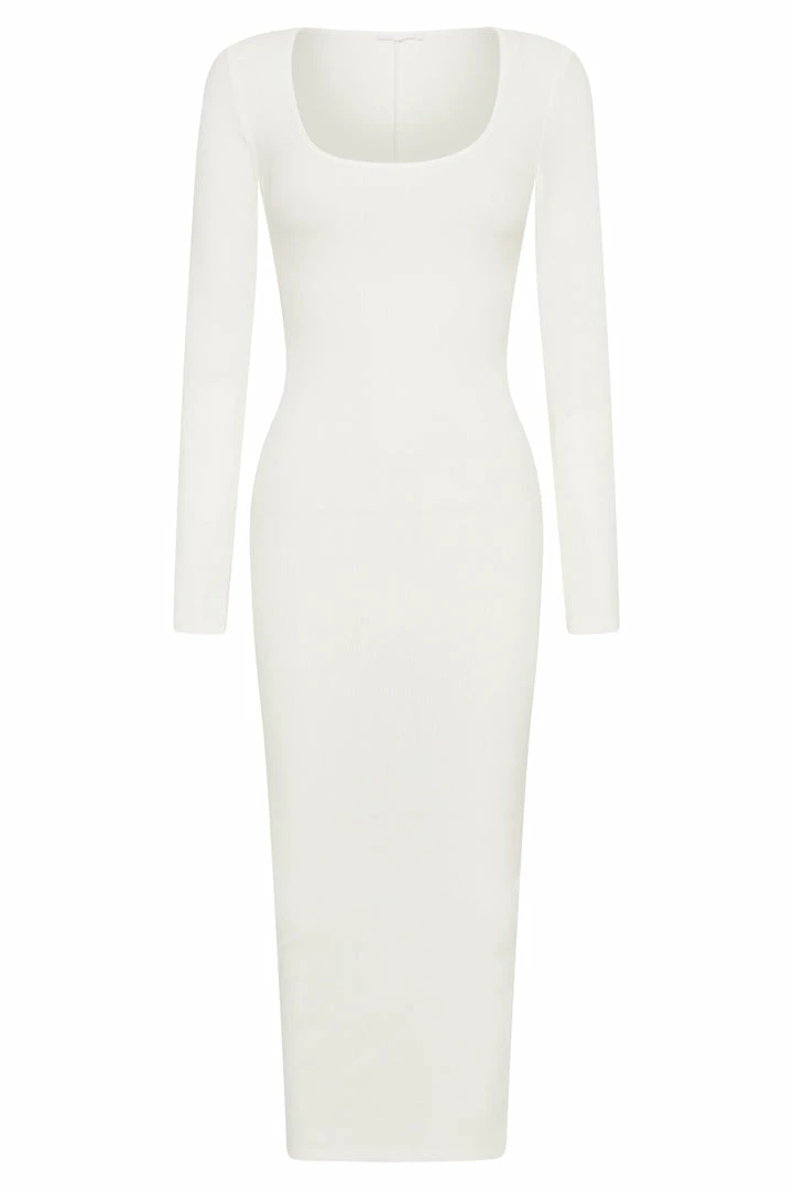 ROM DRESSES Sierra Scoop Neck Long Sleeve Midi Dress – White