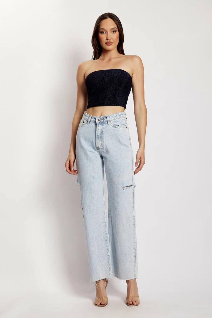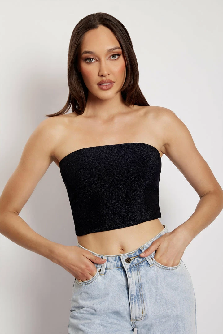 Embrace minimalism in the JENNIFER Shimmer Strapless Crop Top with its endless styling options. Simplistic in its design, Jennifer boasts a strapless design and is fully lined for a comfortable finish. Complete this look with our EBONY Flare Full-Length Denim for a fun 70s inspired weekend look.