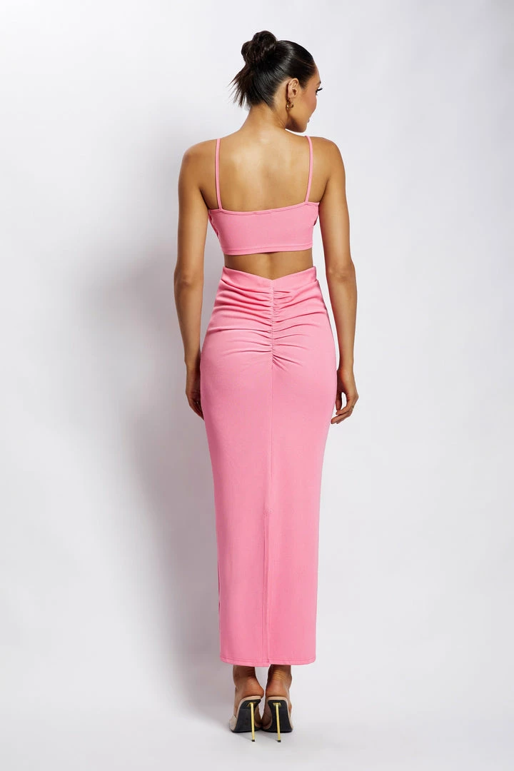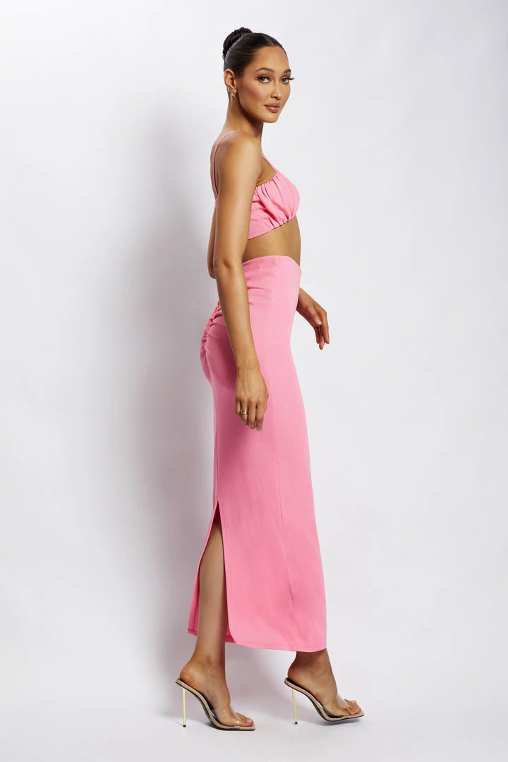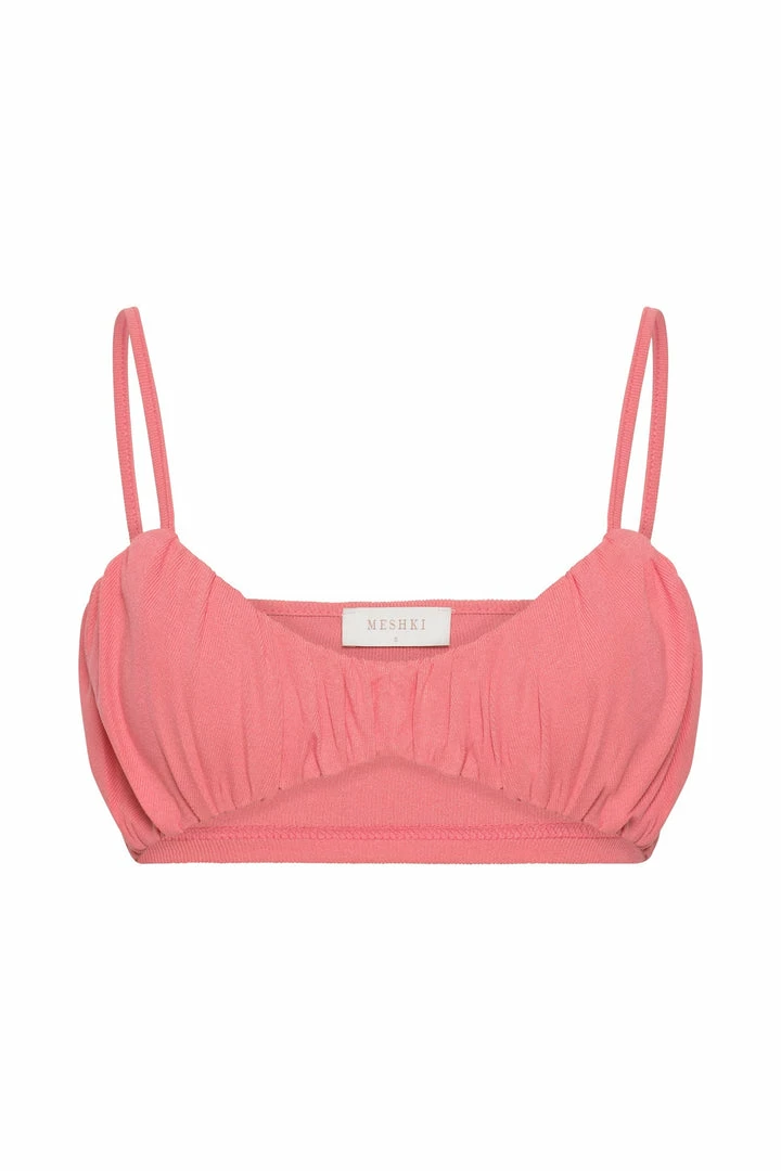 Constructed in a soft knit jersey, the JORDAN Ruched Front V Front Top showcases a fun and flirty bralet with gentle front ruching for added detailing. She offers an easy slip on design that is lined for comfort and skinny shoulder straps for a minimal appeal. Pair with our Roxie V Waistband Maxi Skirt and sleek heels for an irresistible combination.