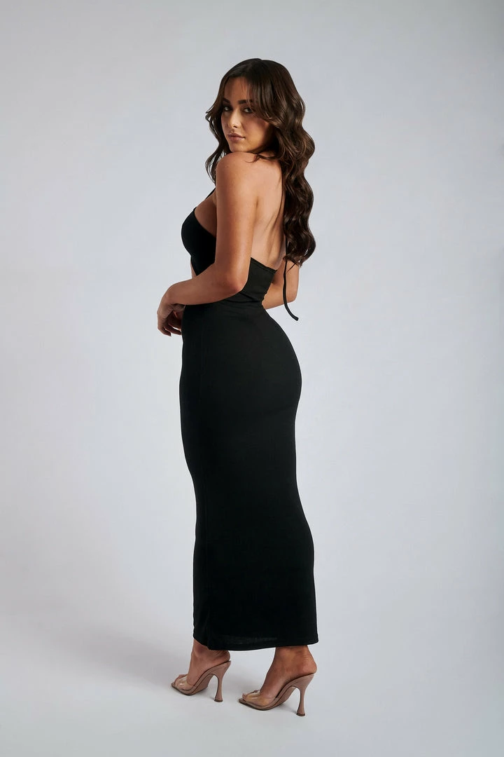 You’ll be irresistible in our MADDIE Ribbed Drawstring Midi Dress. Featuring a seductive halter neck, a cut out design under the bust and midi length, this dress will make you feel like dream when it hugs all your curves and cinches in your waist. This look needs a oversized clutch and bangles stacked up your arm to complete the perfect on trend look!