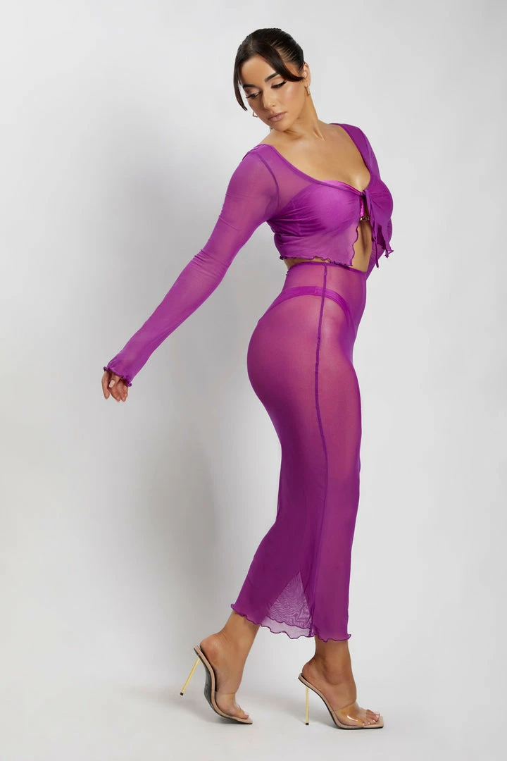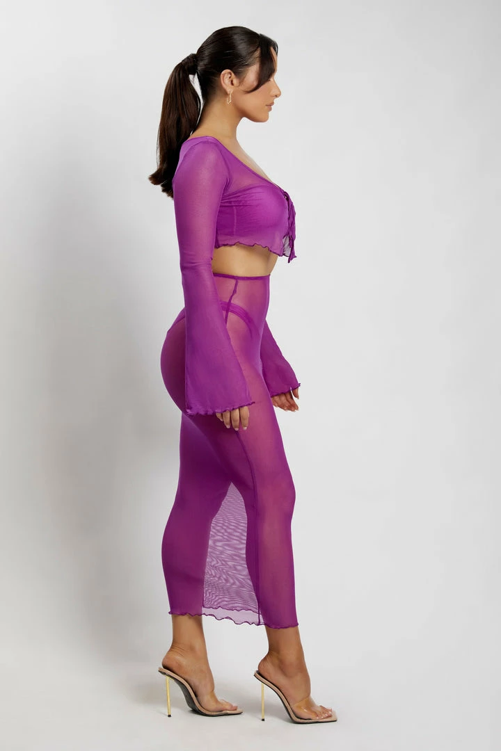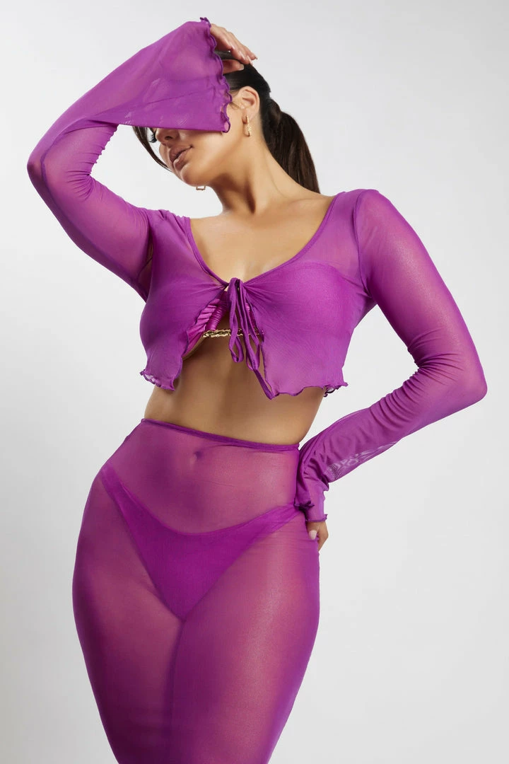 ROM Natalia Flare Sleeve Mesh Crop Top – Violet