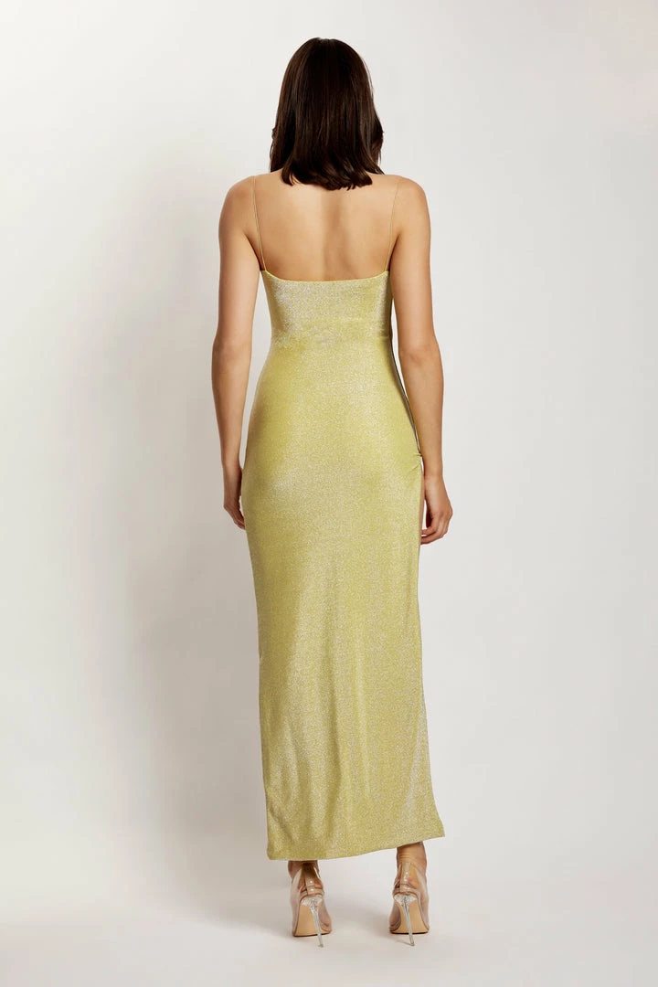 The TAMMY Shimmer Deep V Maxi Dress showcases a simplistic silhouette in a show-stopping shimmer jersey. Designed to contour to your body and accentuate your curves, Tammy features a cowl neckline and thigh-high split to enable movement with ease. Pair with acrylic heels and you’ll be the best dressed guest at your next event.