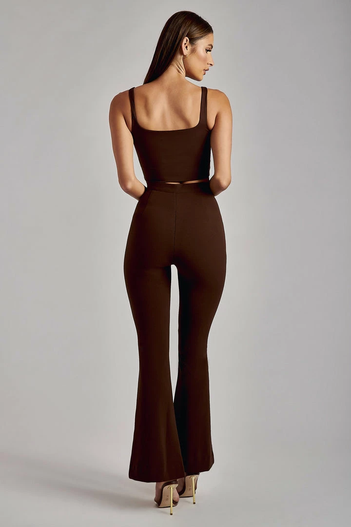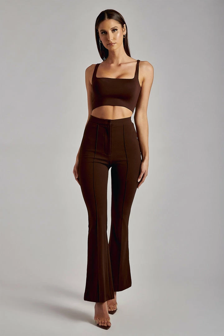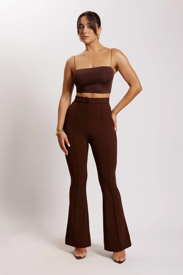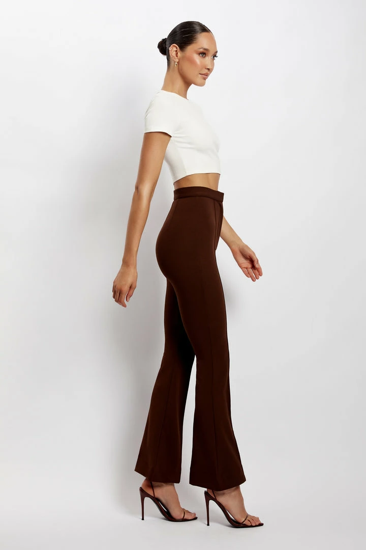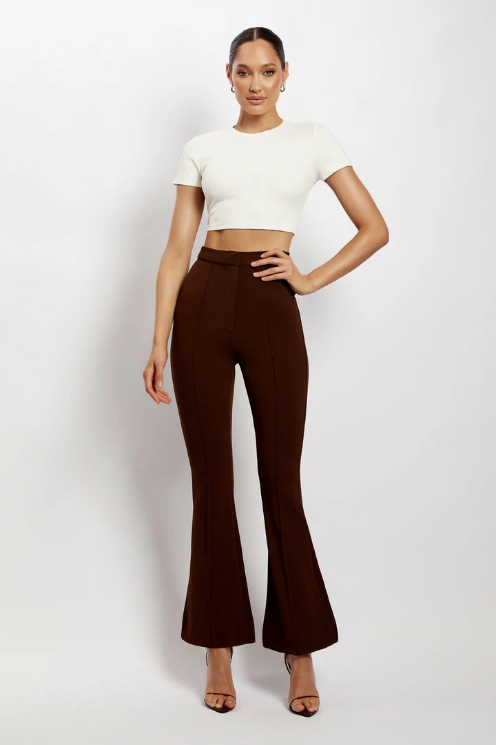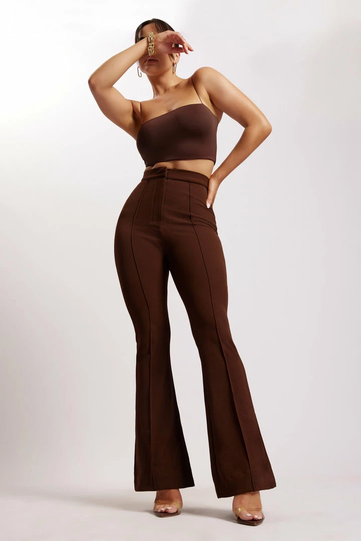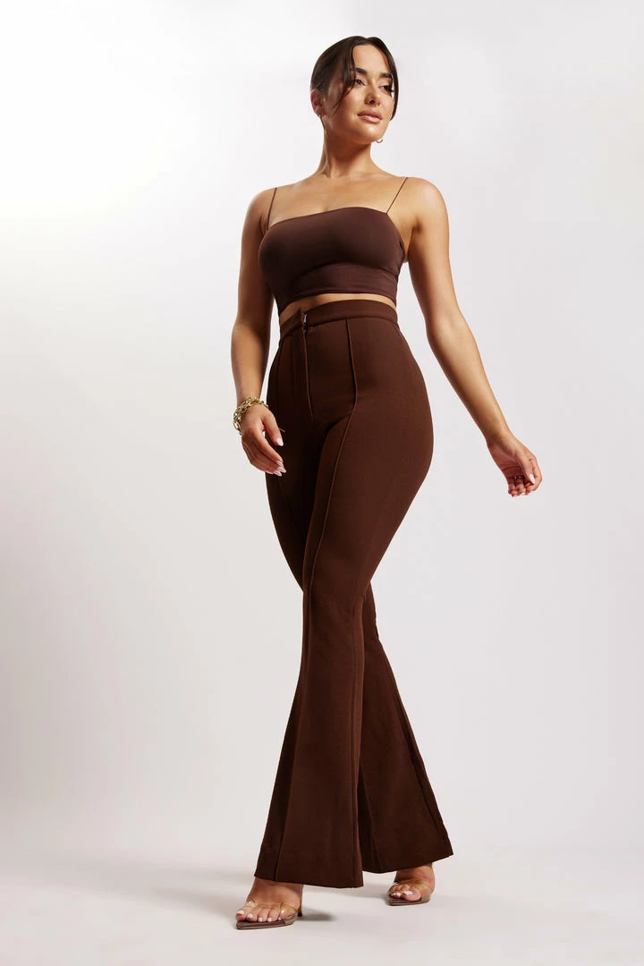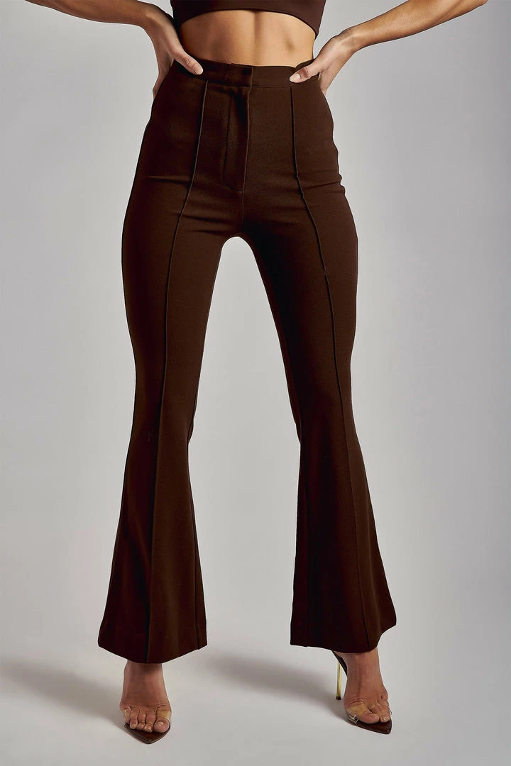 Our ZENDAYA Flare Pants are giving us major boss babe vibes! These pants are a lightweight jersey material, high-waist fit with button and zipper to close. Wear from desk to dinner and everything in between.