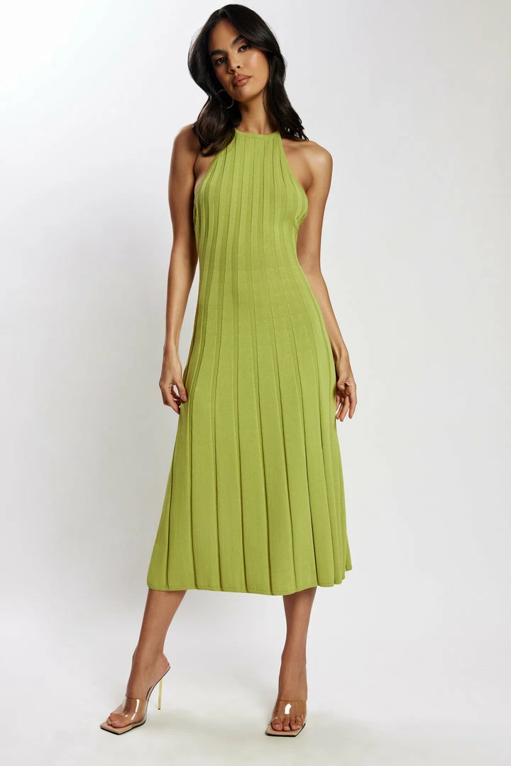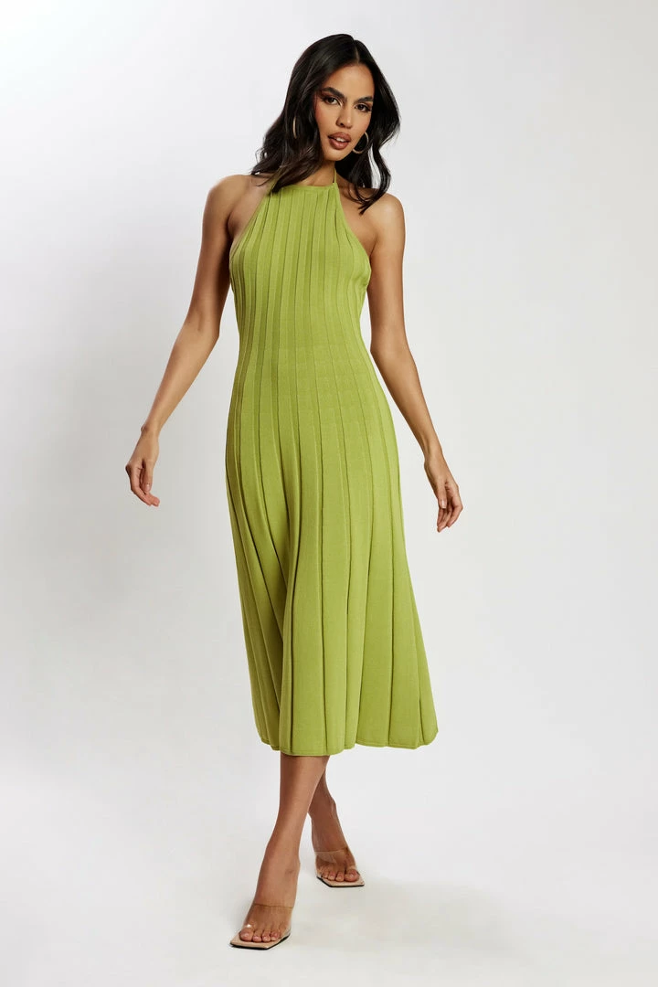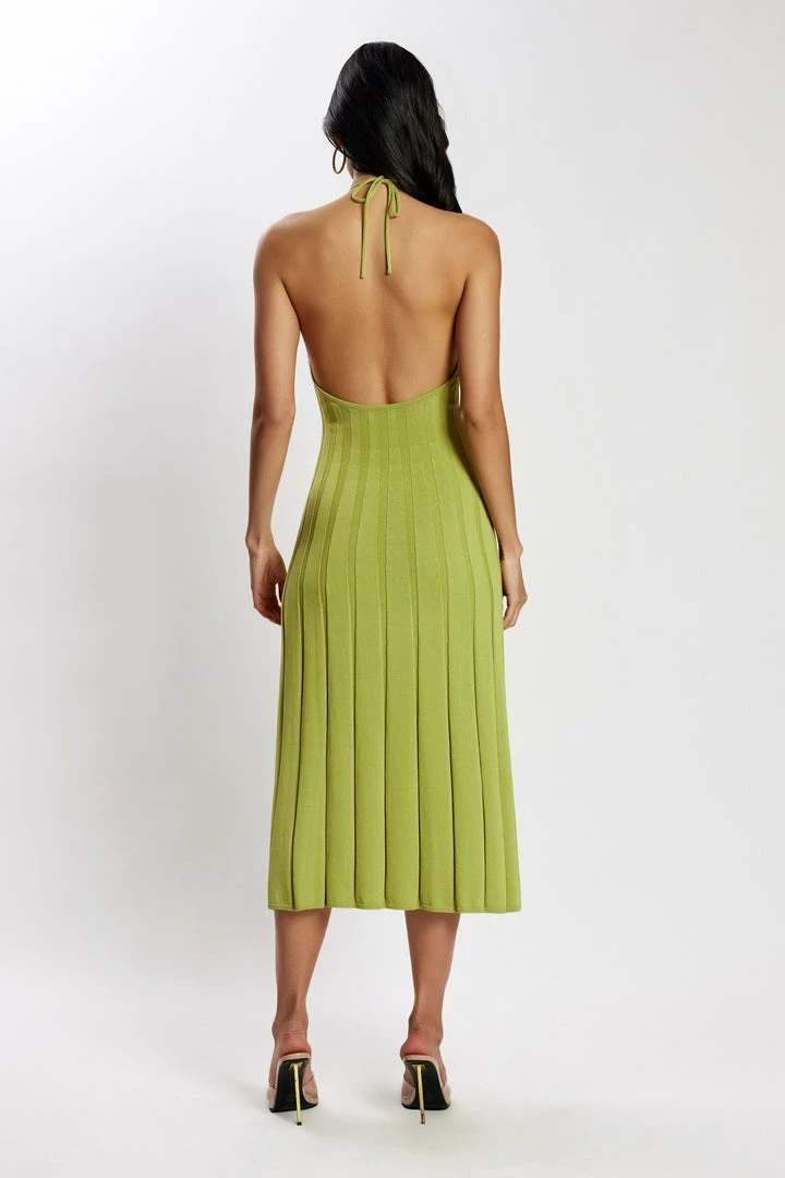 Exude elegance in ADRIENNE. Crafted from a beautiful knit, she drapes effortlessly over the body and is balanced by a halter neckline and open back. In a straight cut silhouette, Adrienne is fitted at the waist and will captivate from all angles. Taking you seamlessly from a long lunch to sundown cocktails, pair with gold jewellery for a polished look.
