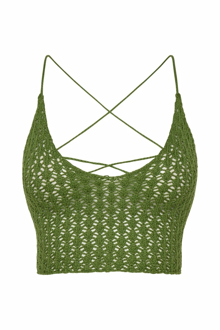 Make an entrance in ROSELLA. Designed for sun soaked days that turn into balmy nights, this crochet masterpiece is intricate in design yet versatile in nature. She features a V front neckline, barely-there cross back straps and a cropped fit to remain effortlessly elevated. Team with our Rosella Crochet Maxi Skirt and chic slides for your next boat party or cruisy days by the pool.