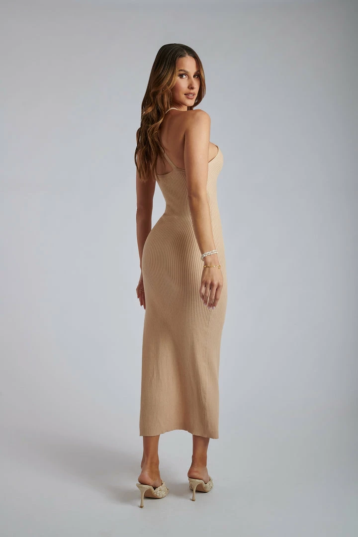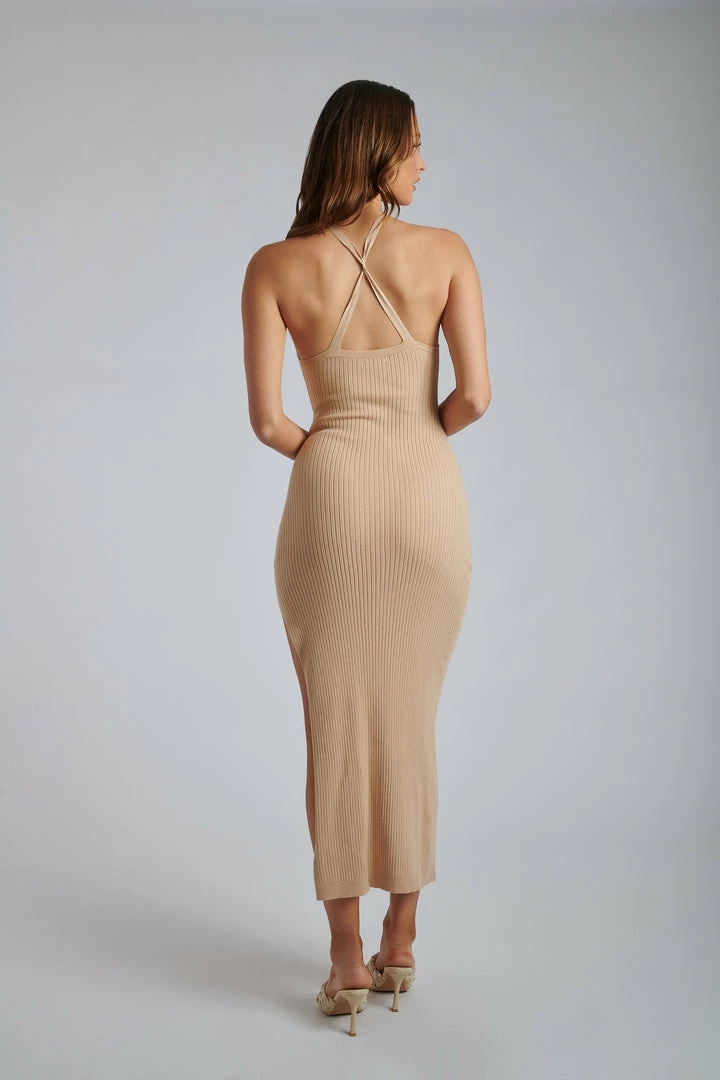 The Ultimate Midi Dress! The BERINA Heater Knit Midi Dress will hug your body perfectly, featuring a halter detail, cut-out back detail, and stretchy knit fabrication what is not to love about this midi?