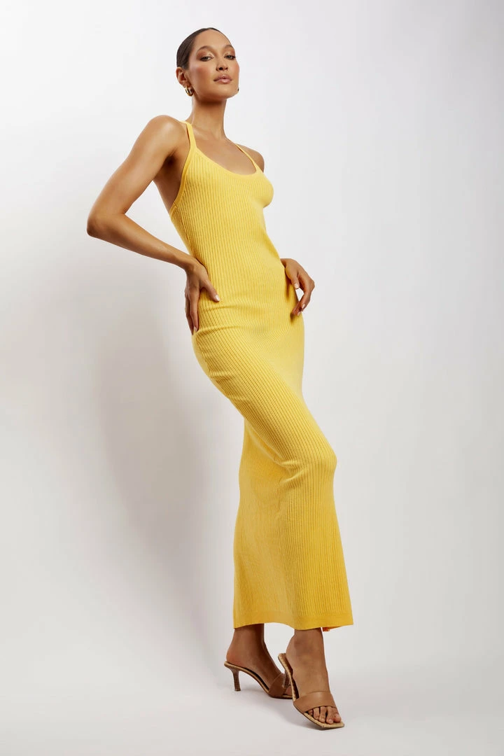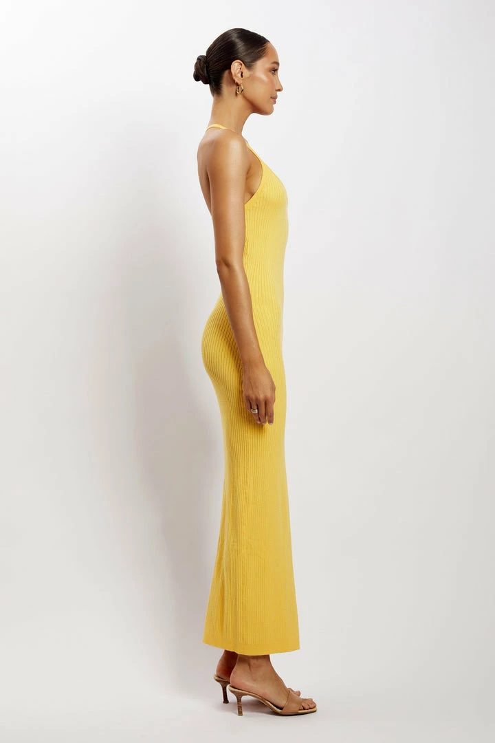 SOP DRESSES Yasamin Halter Knit Maxi Dress – Yellow