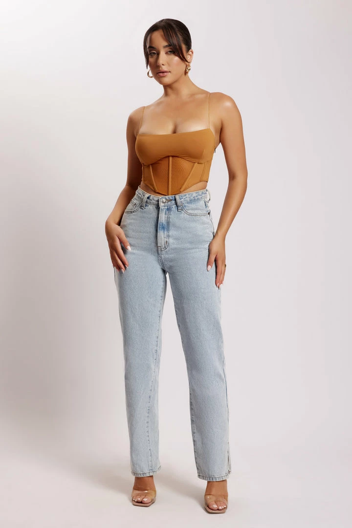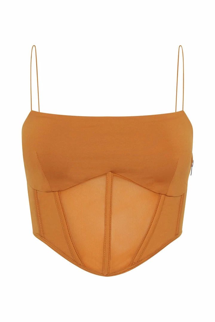 The JADA Mesh Bustier Crop Top is a chic update to your basic crop top. Featuring a soft to the touch jersey fabrication, Jada features barely-there shoulder straps and structured mesh corsetry that will accentuate your waist. Pair back with denim to remain effortlessly on trend.