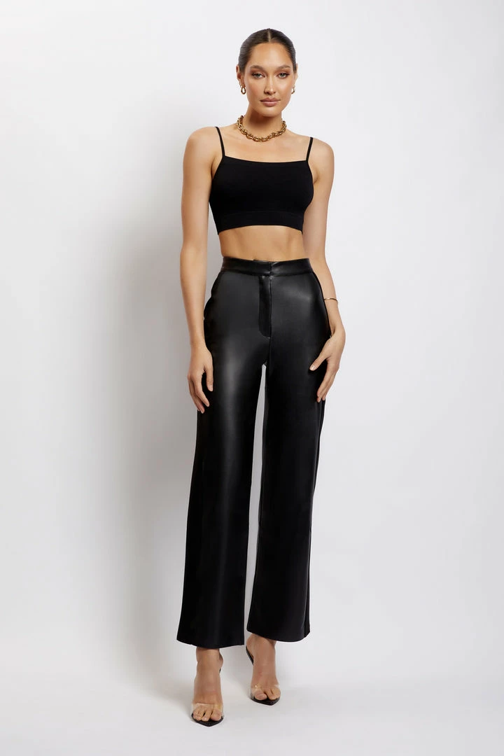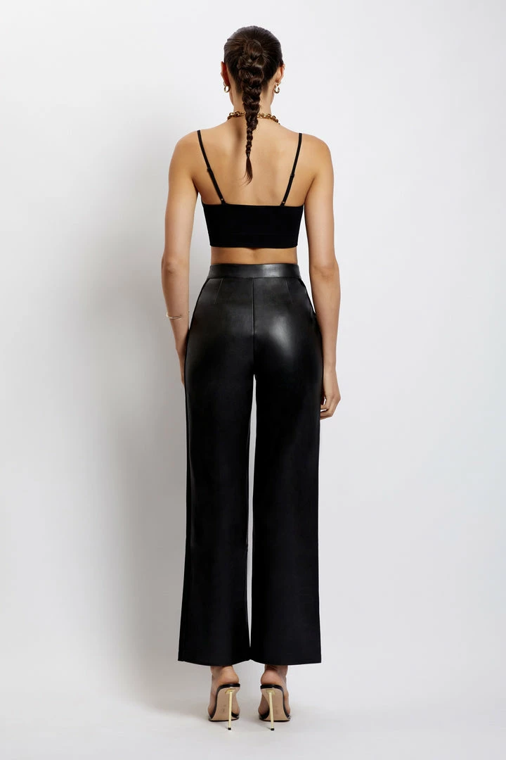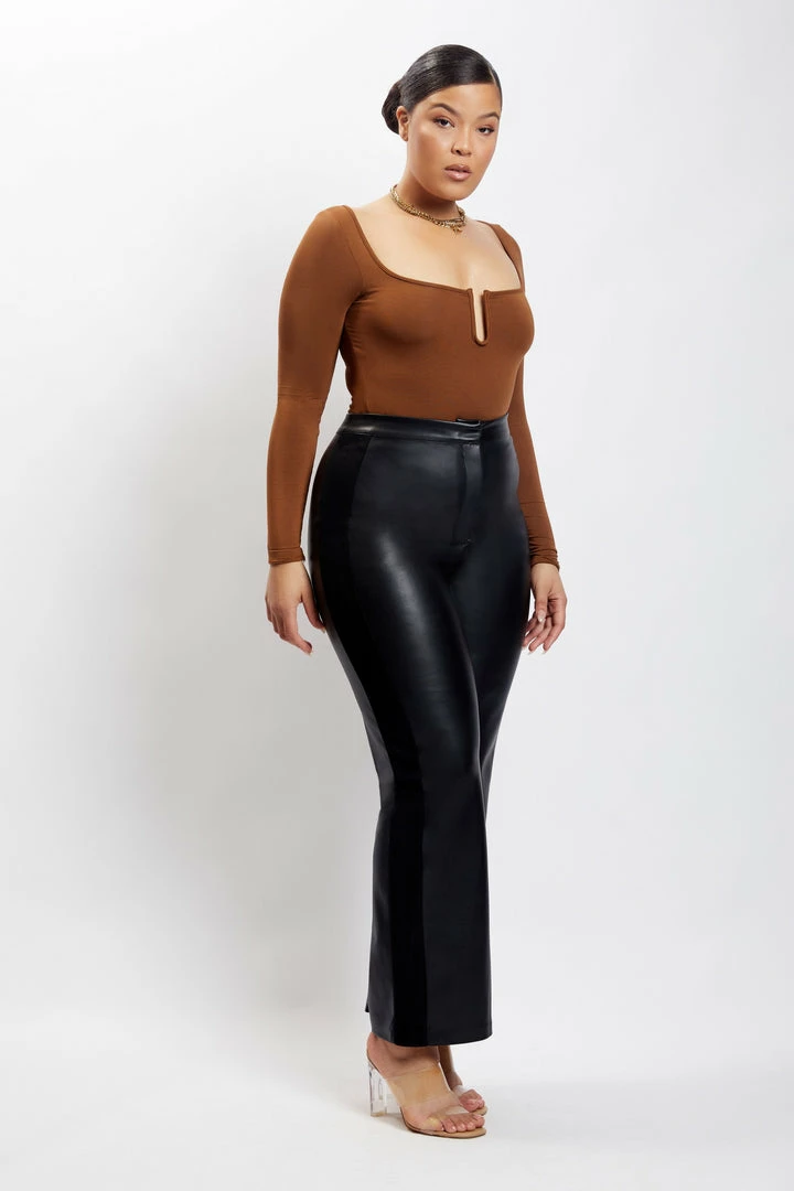 Redefine your wardrobe staples with the ALICE Suede Side Faux Leather Pants. Boasting a timeless straight cut silhouette, Alice sits high on the waist and is crafted from our signature faux leather fabrication that is soft to the touch and equal parts comfortable AND flattering! She is versatile in nature and the perfect companion for all of your bodysuits and tops for any occasion on the horizon.