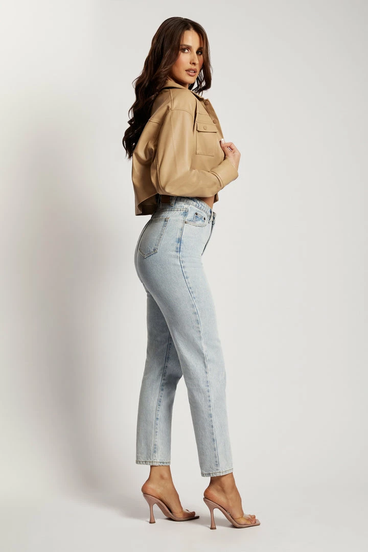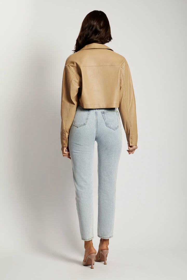 Welcome the ALAIA Pu Cropped Jacket to your transeasonal outerwear wardrobe. Crafted from a shiny patent fabrication, Alaia features a collared neckline and functional front pockets in a cropped design. She makes the perfect throw-on piece and will compliment every outfit and bring out your inner edginess. Style with our favourite denim to elevate your everyday or opt for a tonal with our matching Mahla Faux Leather Square Neck Crop and Kasia Faux Leather Mini Skirt.